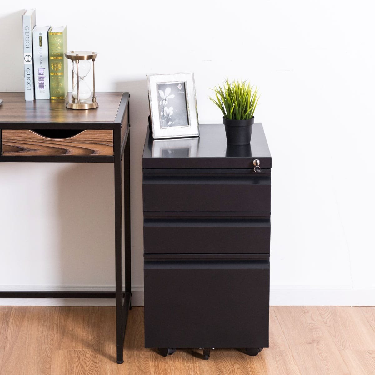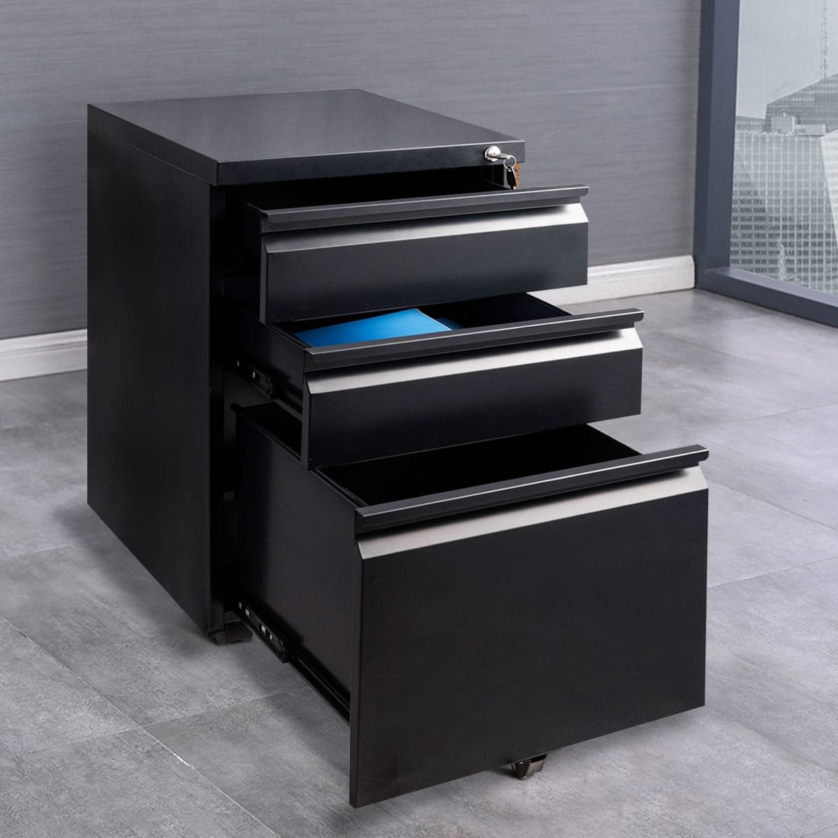Biuro konteineris su 3 stalčiais ir spyna (Juoda)