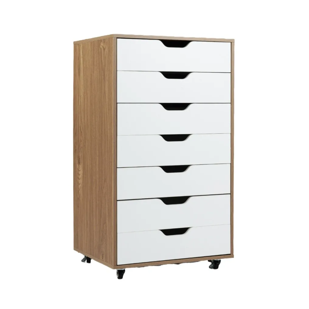 Išnaudokite savo erdvę maksimaliai su šia universalia septynių stalčių komoda, kuri palengvins biuro reikmenų, kosmetikos, smulkių daiktų ir daugelio kitų tvarkymą. Jos elegantiškas dizainas tiks bet kokiam kambariui, užtikrindamas, kad svarbiausi daiktai visada būtų tvarkingai sudėti ir lengvai pasiekiami.