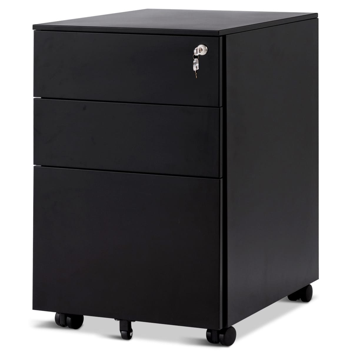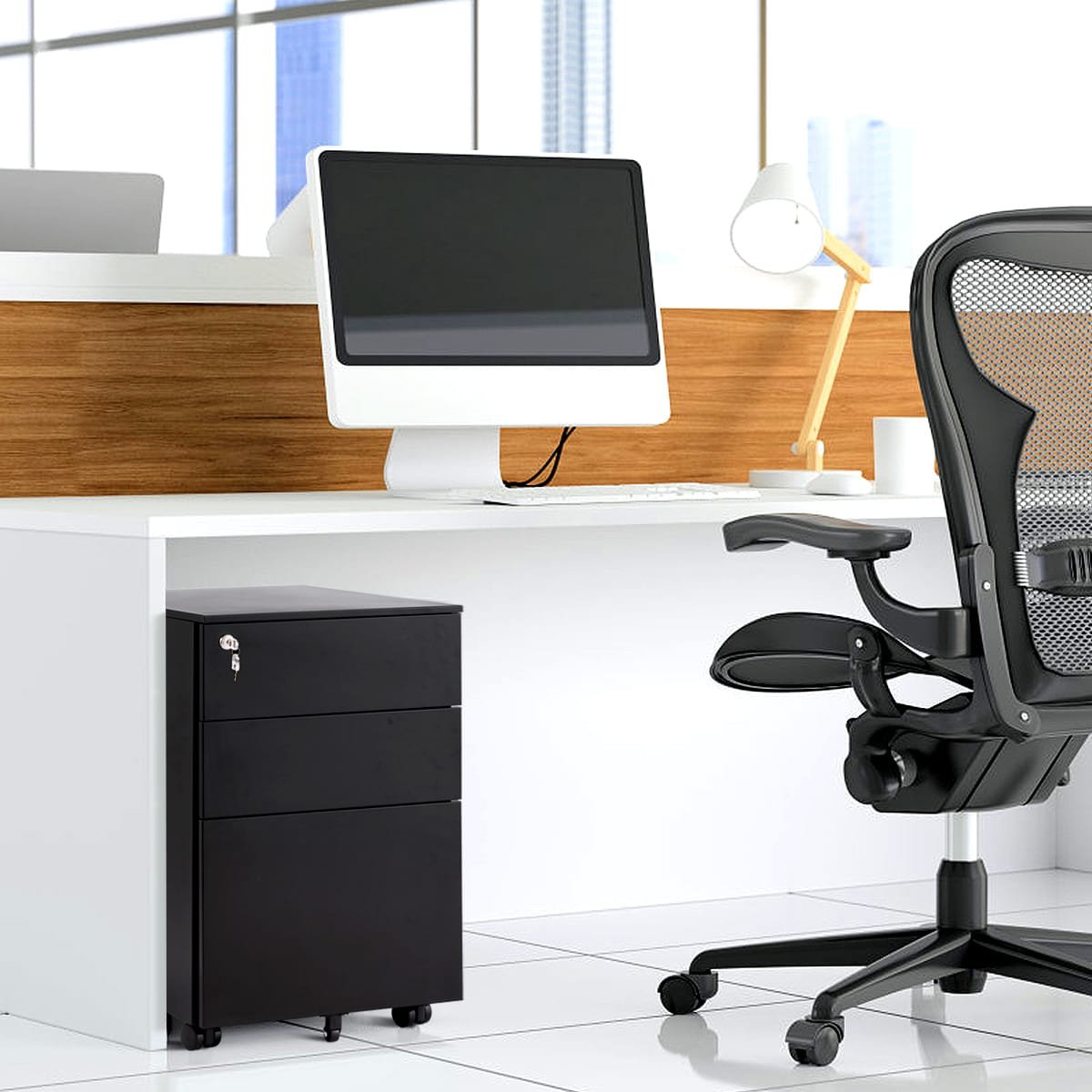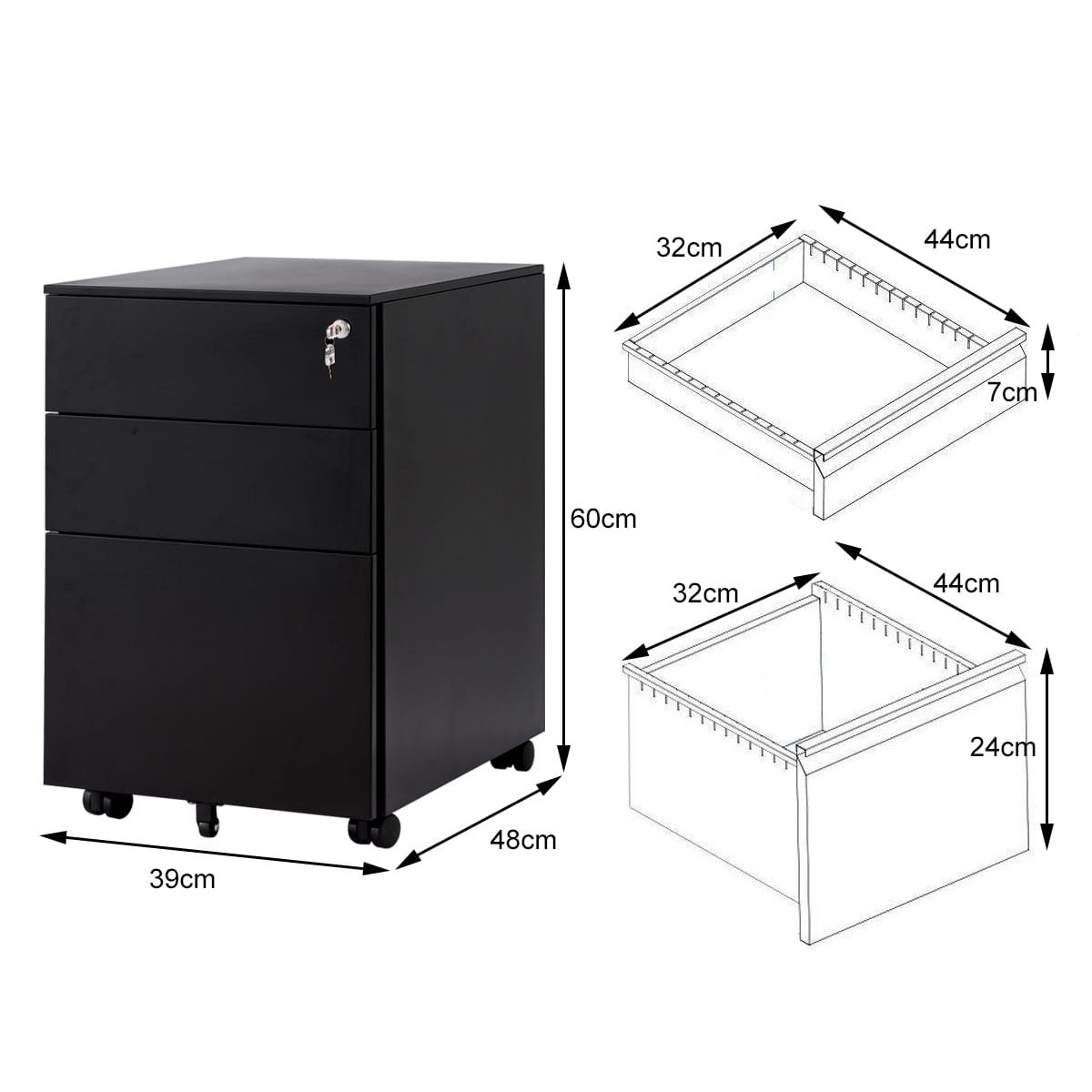 Biuro spintelė su trimis stalčiais ir užraktu (Juoda)