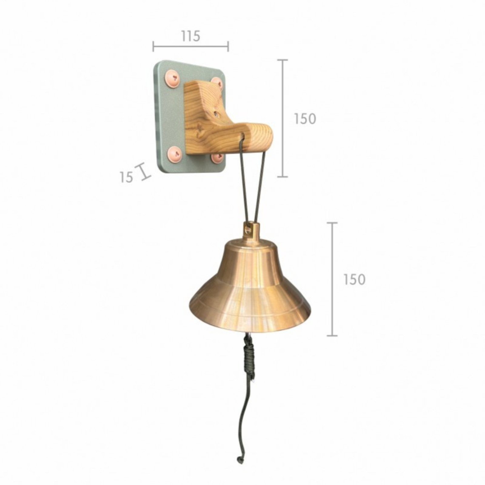 - Pagamintas iš bronzos (ne plastiko), pritvirtintas prie tvirto medinio laikiklio.