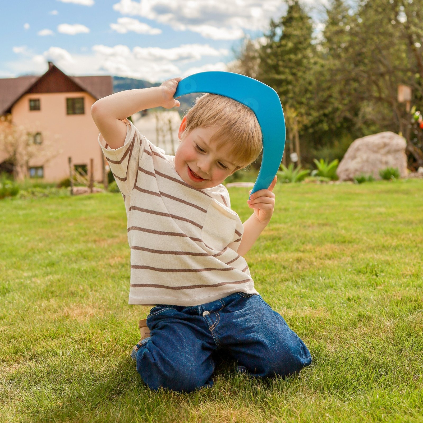 Bumerangas – tai įdomus žaislas, kurio šaknys siekia senovės kultūras. Jis džiugina įvairaus amžiaus žmones visame pasaulyje ir padeda lavinti judesių koordinaciją. Mėtant bumerangą, aktyvus žaidimas susijungia su judesiu, teigiamai veikiančiu stambiąją motoriką ir skatinančiu fizinį aktyvumą gryname ore. Vaikai tobulina taiklumą, judesių planavimą ir bendrą koordinaciją.