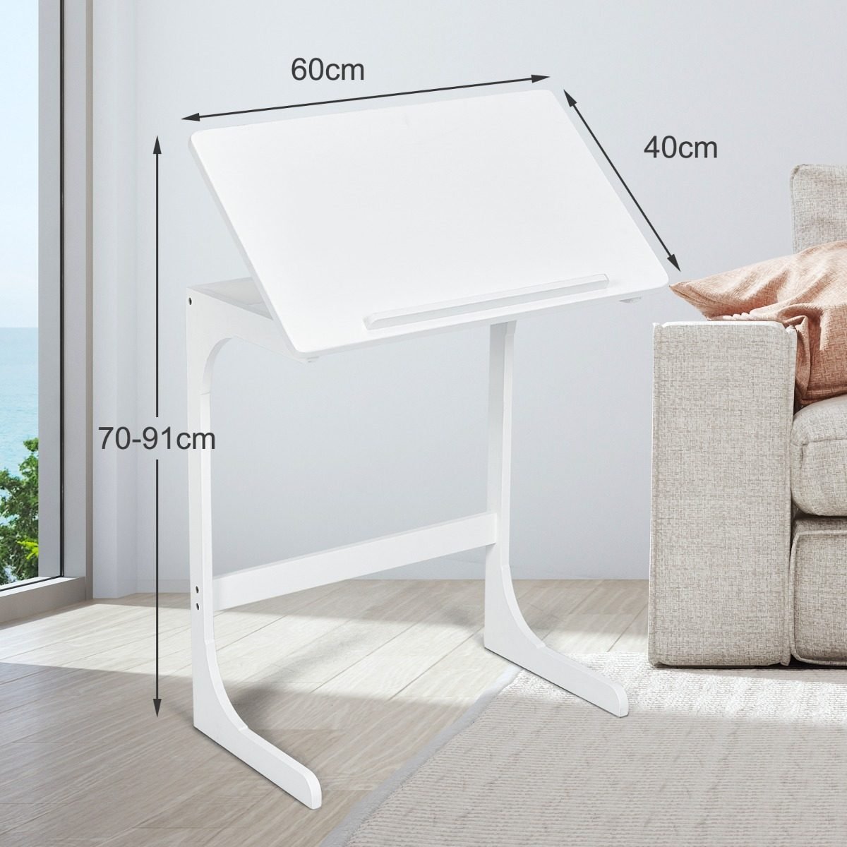 Ieškote stilingo ir funkcionalaus staliuko? Šis C formos staliukas su metaliniu rėmu – puikus sprendimas Jūsų namams. Jo unikalus dizainas leidžia priglausti jį prie sofos ar lovos, suteikiant patogią darbo ar poilsio erdvę.