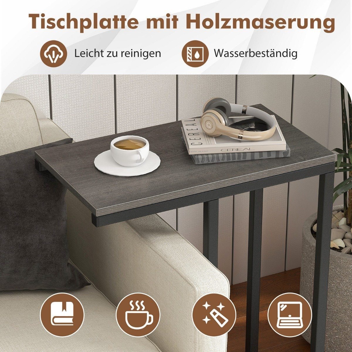 Pristatome universalų C formos staliuką, sukurtą optimizuoti jūsų gyvenamąją erdvę. Jo kompaktiškas dizainas leidžia patogiai pastumti jį po baldais, todėl jis idealiai tinka tiek mažesniems būstams, tiek norintiems sutaupyti vietos.