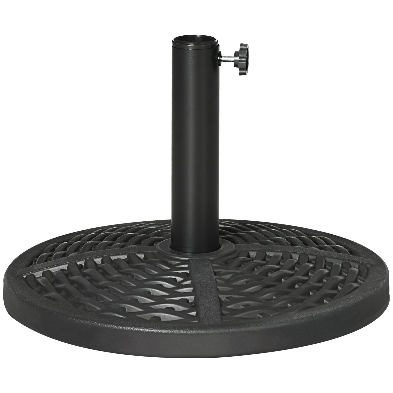 Mėgaukitės lauko gyvenimo būdu su šiuo tvirtu pildomu skėčio stovu. Tinka Ø38 mm ir Ø48 mm skėčio strypams, cementu užpildytas skėčio stovas užtikrina optimalų stabilumą. Patrauklus rotango stiliaus skėčio stovas papuoš bet kurią terasą. Derinkite jį su elegantišku terasos skėčiu ir stalu, kad sukurtumėte savo asmeninę pavėsio oazę.