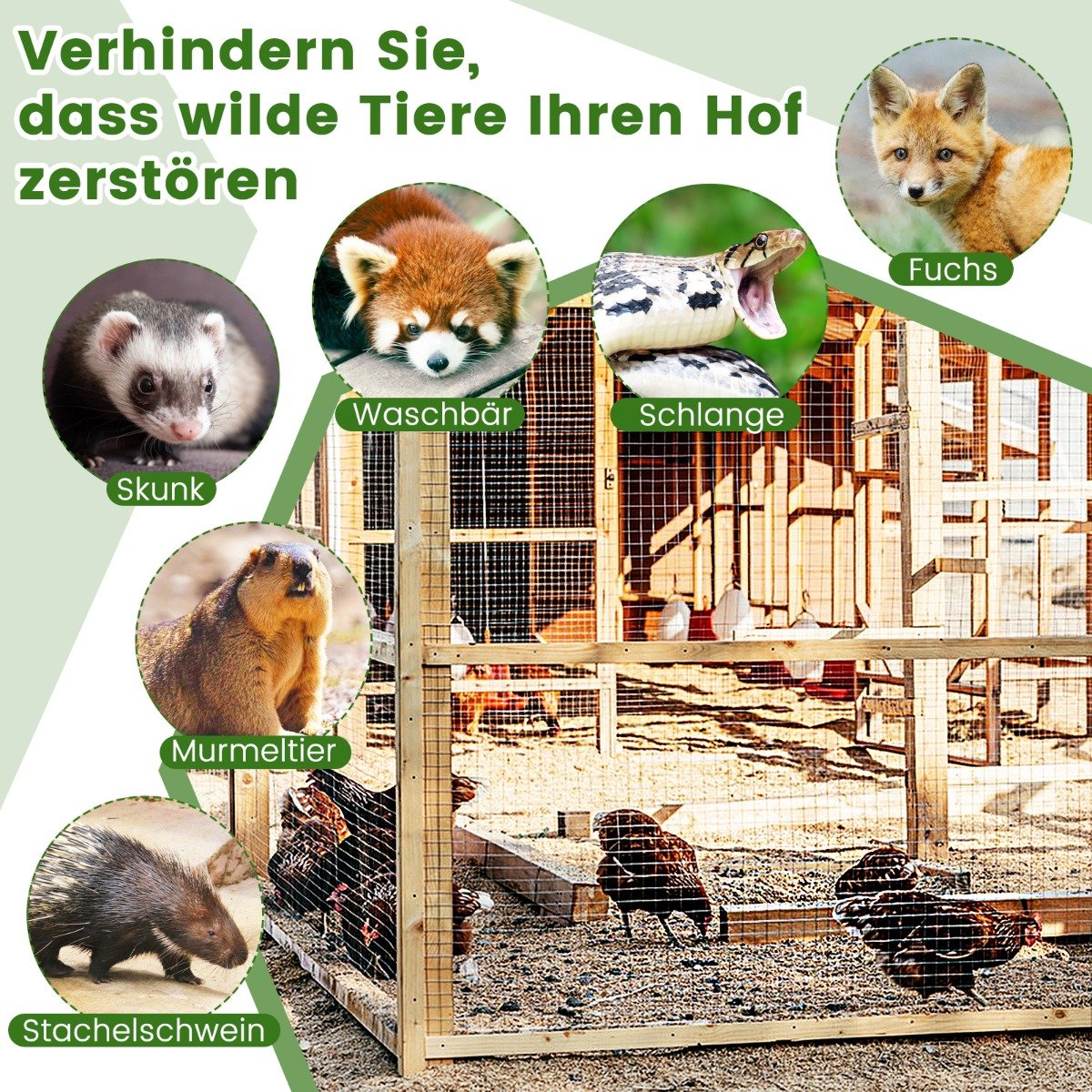 Šis cinkuotas vielos tinklas pagamintas pažangiu karšto cinkavimo būdu, todėl jis ilgaamžis lauke, atsparus rūdims ir įtrūkimams. Tinklo 50 x 25 mm akutės užtikrina puikų oro pralaidumą ir apsaugo nuo įvairių laukinių gyvūnų.