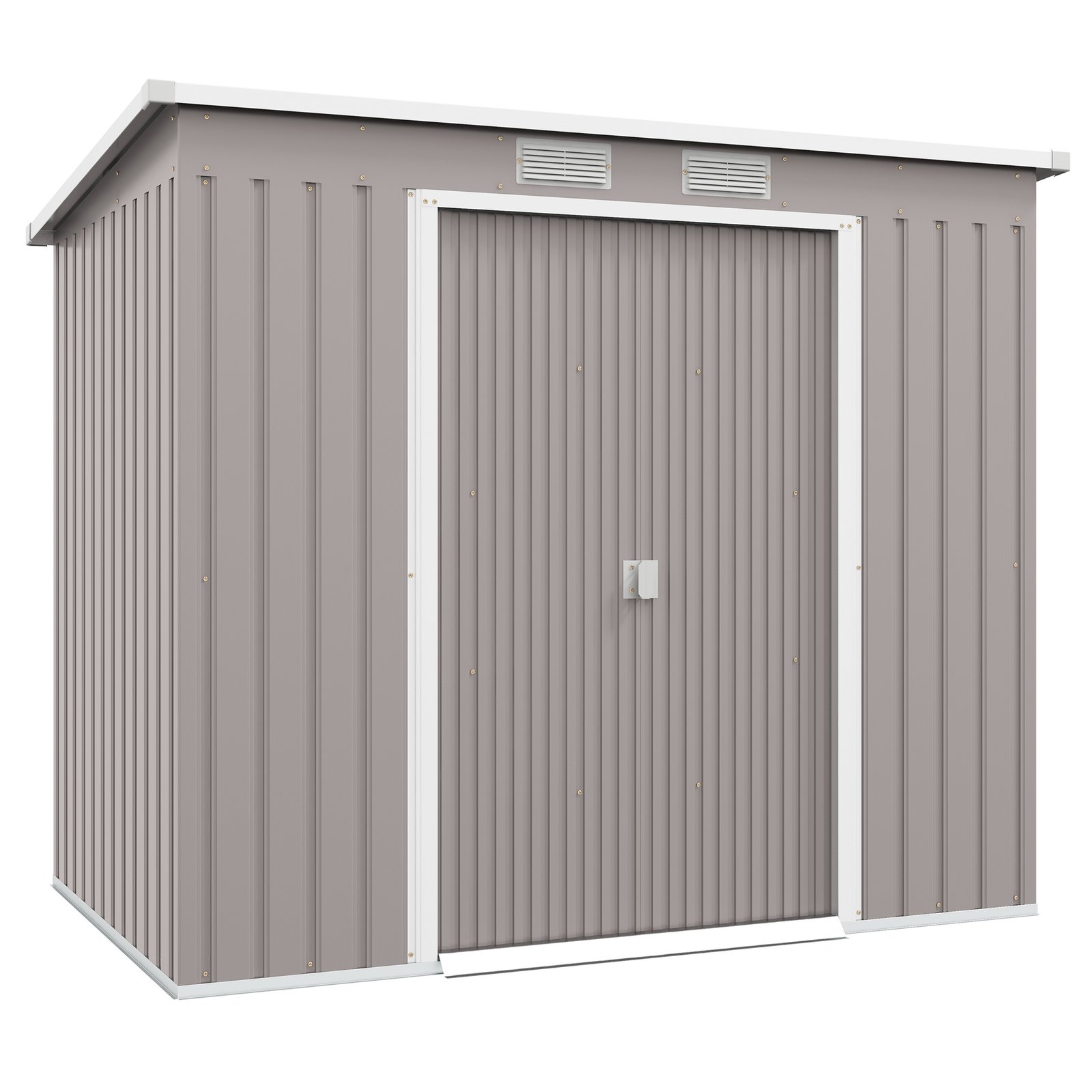 Pagamintas iš aukštos kokybės, nerūdijančio plieno, šis įrankių namelis garantuoja ilgaamžiškumą ir apsaugą jūsų sodo įrankiams. Nuožulnus metalinis sodo namelio stogas neleidžia kauptis vandeniui, o dvigubos durys užtikrina lengvą prieigą. Du ventiliaciniai langai užtikrina sausą, be pelėsio vidaus klimatą. Suteikite savo lauko erdvei tvarkos ir elegancijos – su šiuo praktišku sodo įrankių nameliu jūsų sodas taps traukos centru!