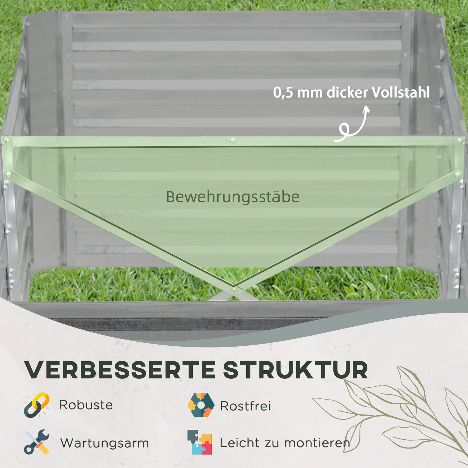 Su šia pakelta lysve galite auginti augalus, daržoves ar gėles visur, kur tik norite. Pagaminta iš plieno su apsaugine danga, ši pakelta lysvė garantuoja ilgaamžiškumą ir puikiai tinka tiek viduje, tiek lauke. Su 180 x 90 cm dydžiu, ši gėlių lysvė suteikia pakankamai vietos šaknų augimui ir prisideda prie jūsų aplinkos atgaivinimo.