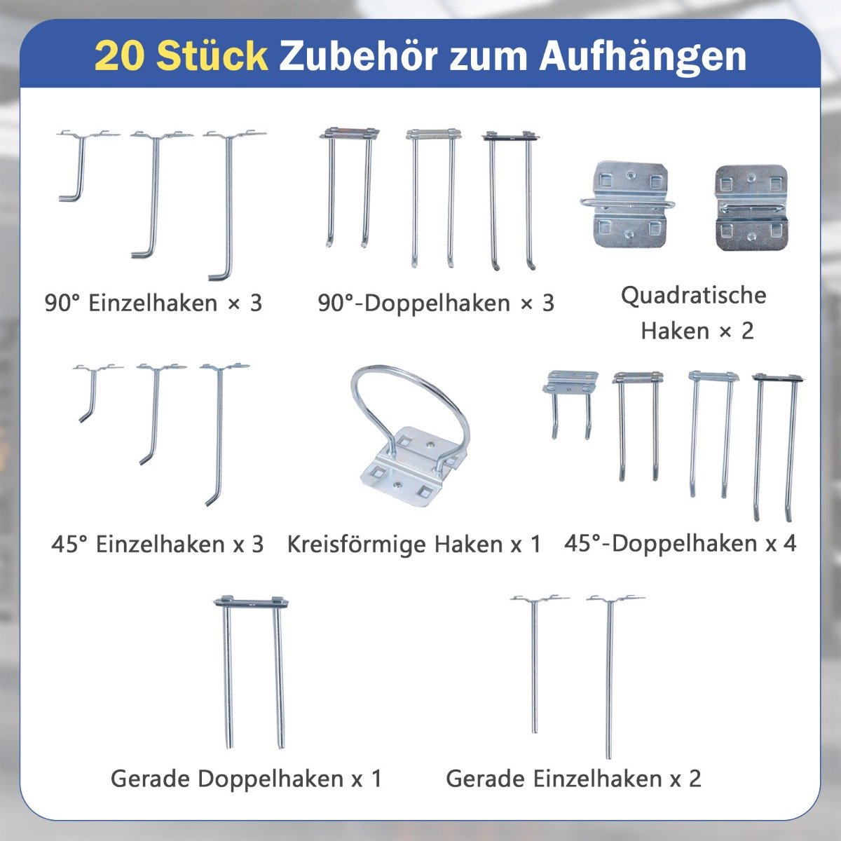 - Komplekte 20 priedų, leidžiančių patogiai kabinti įvairius įrankius.