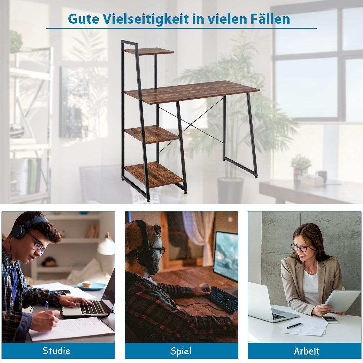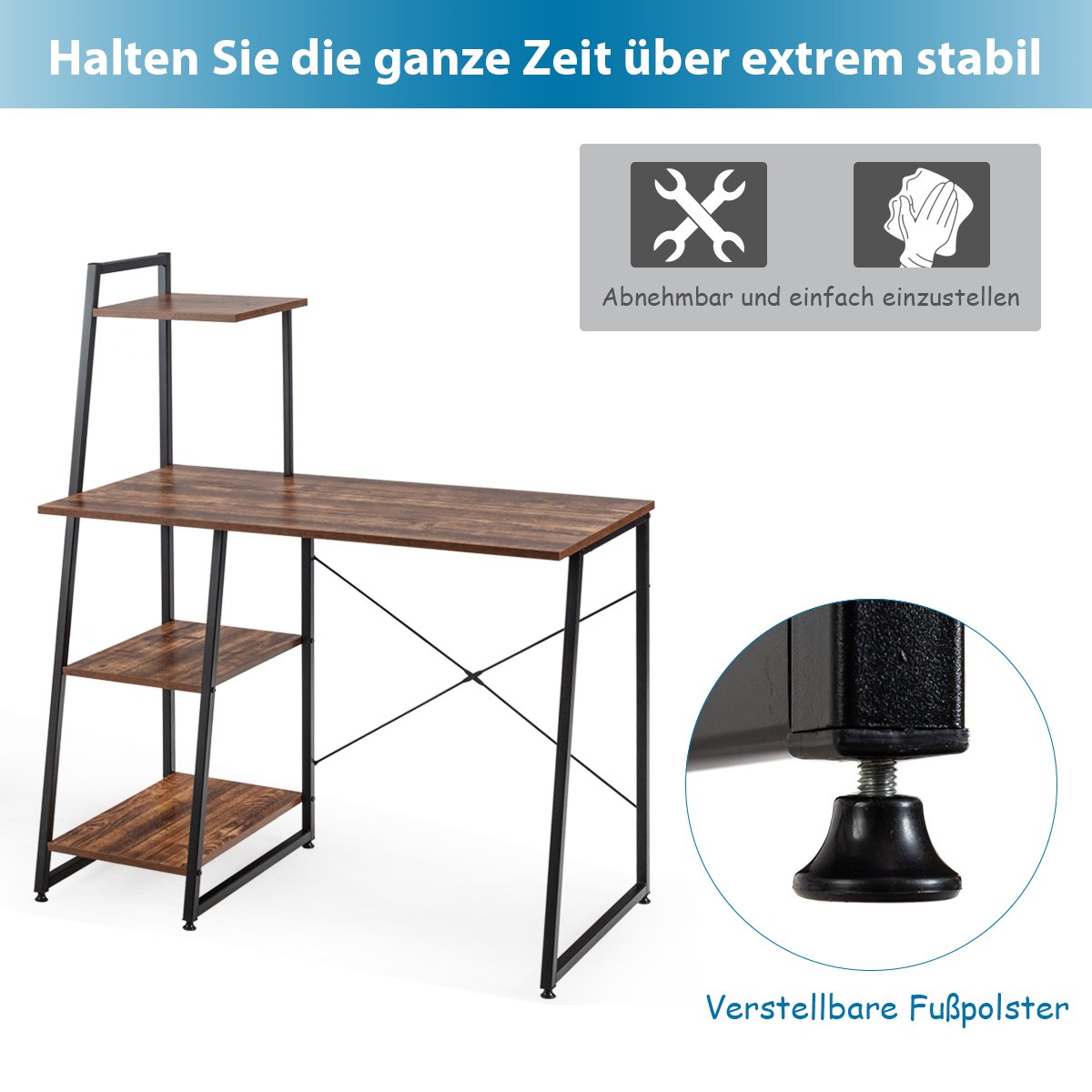 Sukurkite tobulą darbo ar mokymosi aplinką su šiuo 4 pakopų darbo stalu! Šis stalviršis puikiai tinka namų biurui, o jo paprastas, elegantiškas stilius lengvai derės prie jūsų interjero. Platus stalviršis padės palaikyti tvarkingą aplinką, kad galėtumėte sutelkti dėmesį į darbą, žaidimus, skaitymą ir kt.