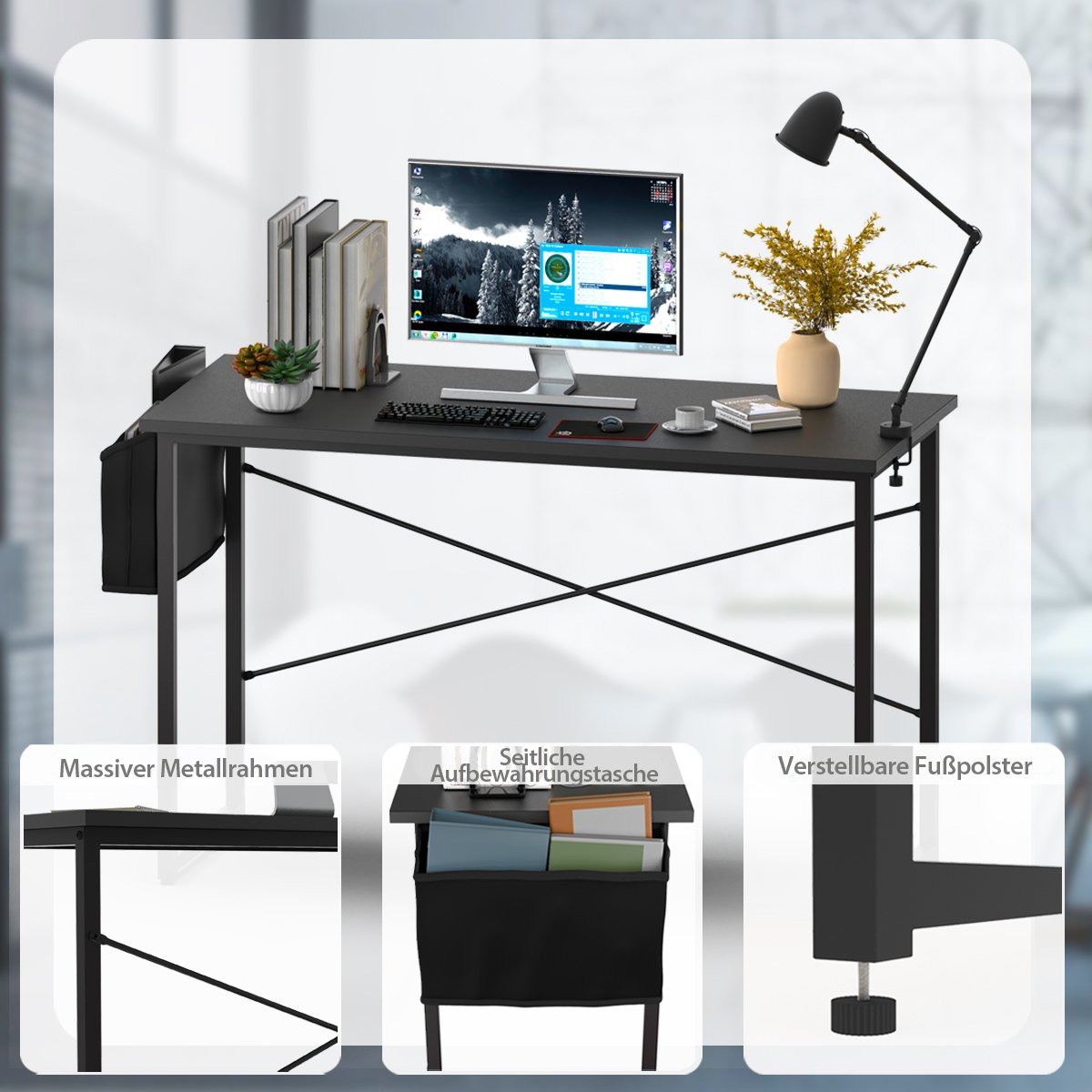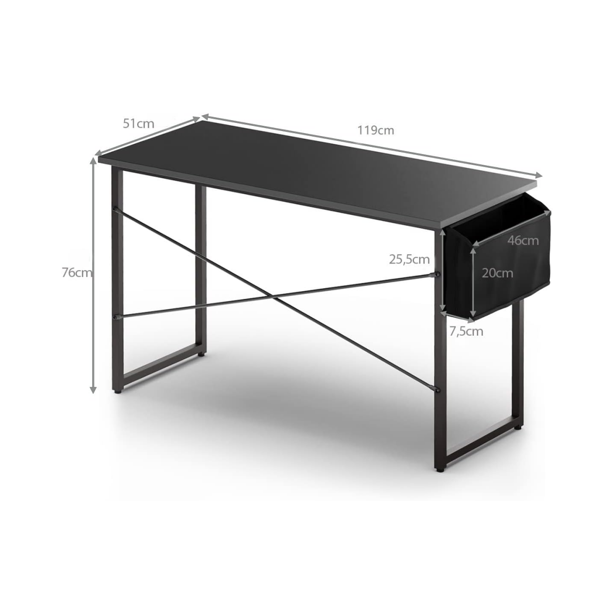 Darbo stalas su laikymo krepšiu medžio drožlių plokštės ir metalo (Juoda)