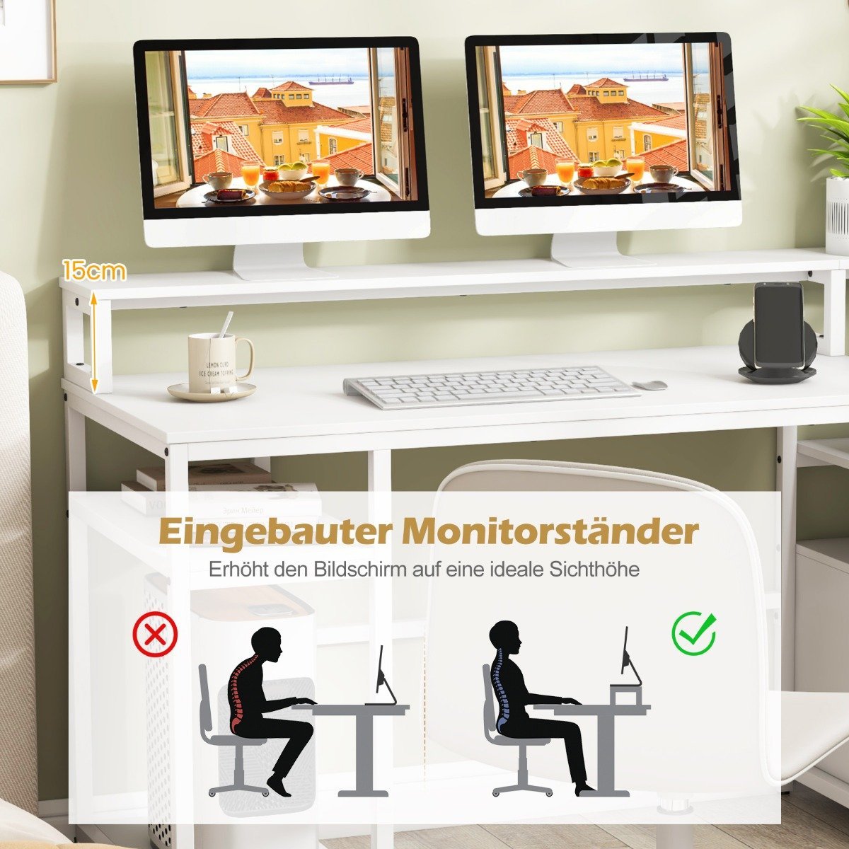 - Ergonomiškas monitoriaus laikiklis: gerina laikyseną ir mažina kaklo įtampą ilgai dirbant.