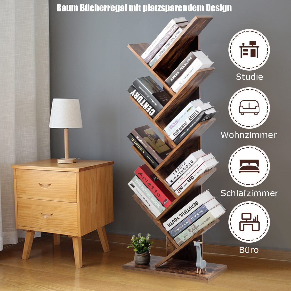 Daugiaaukštė knygų lentyna su apsauga nuo apvirtimo (Rustikalios rudos)