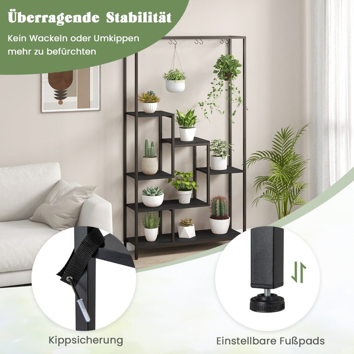 Ieškote estetiško ir funkcionalaus sprendimo savo mėgstamiems augalams? Mūsų daugiafunkcinis augalų stovas suteikia pakankamai vietos visoms jūsų gėlėms, dekoracijoms ar net knygoms. Dėl laipsniško dizaino kiekvienas augalas gauna optimalų saulės šviesos kiekį ir oro cirkuliaciją.