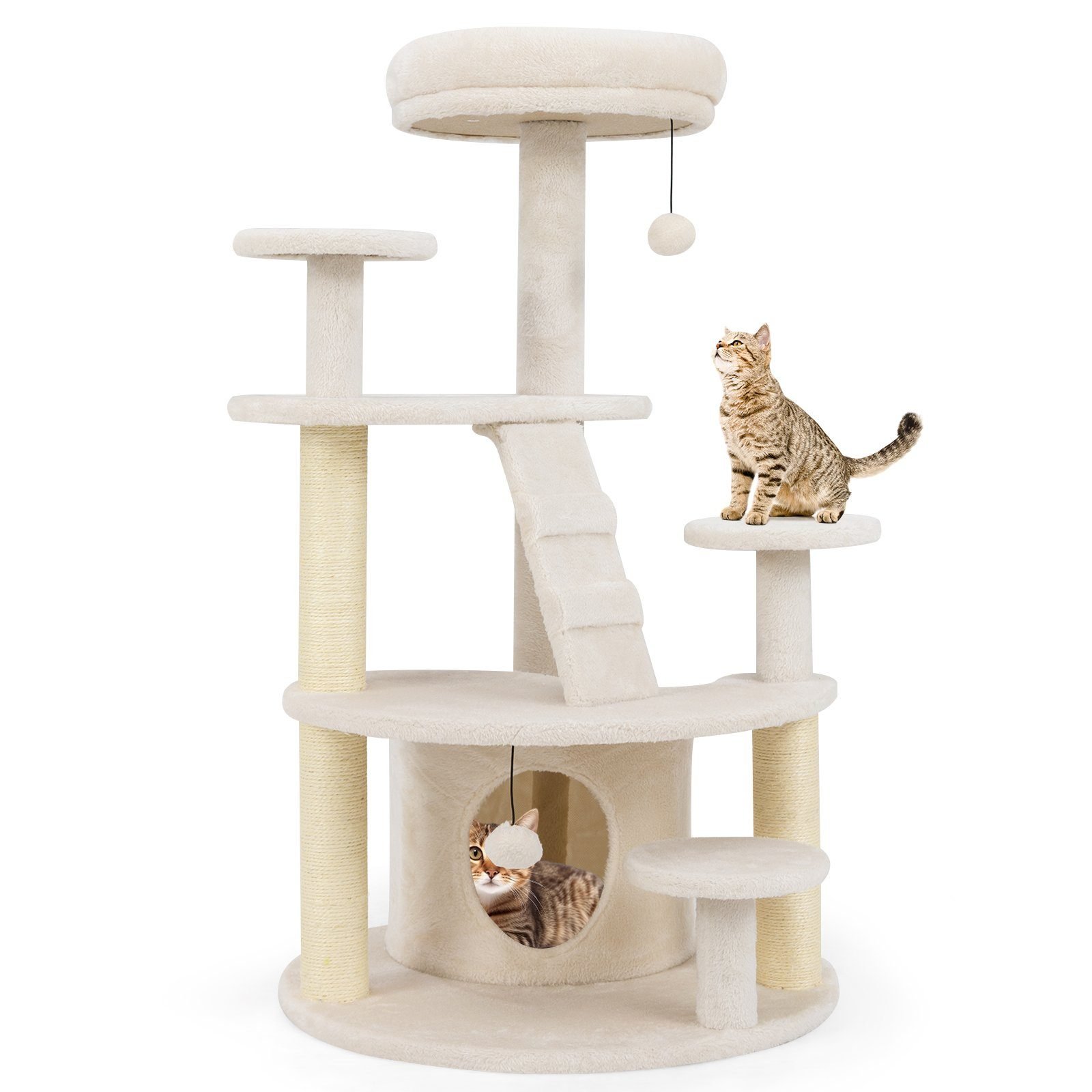 Daugiaaukštis kačių draskyklių namelis su urveliu ir platformomis (Smėlio)