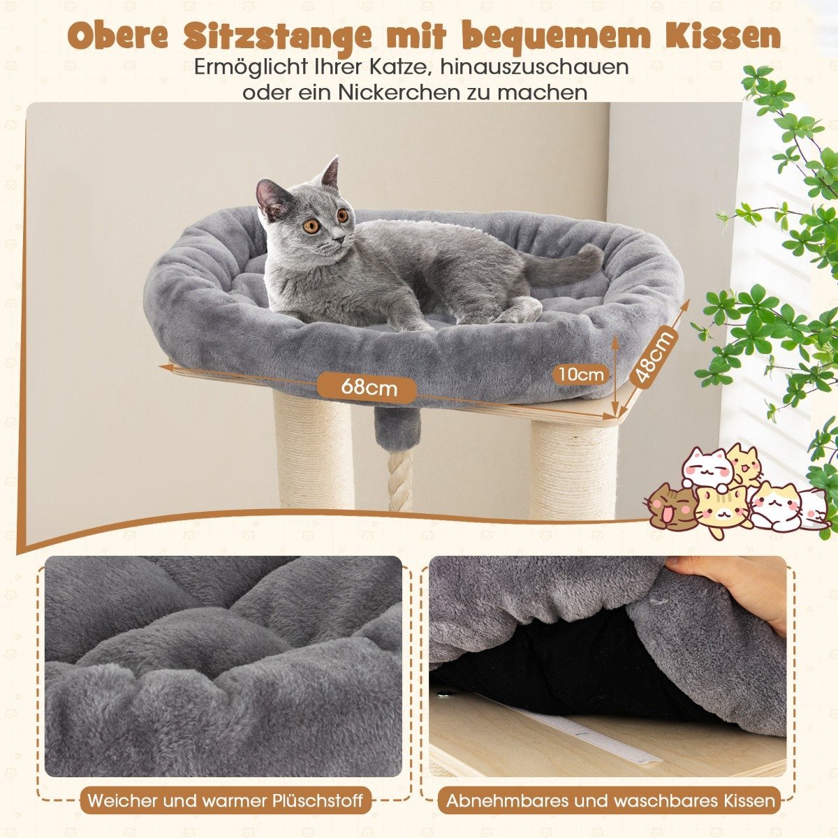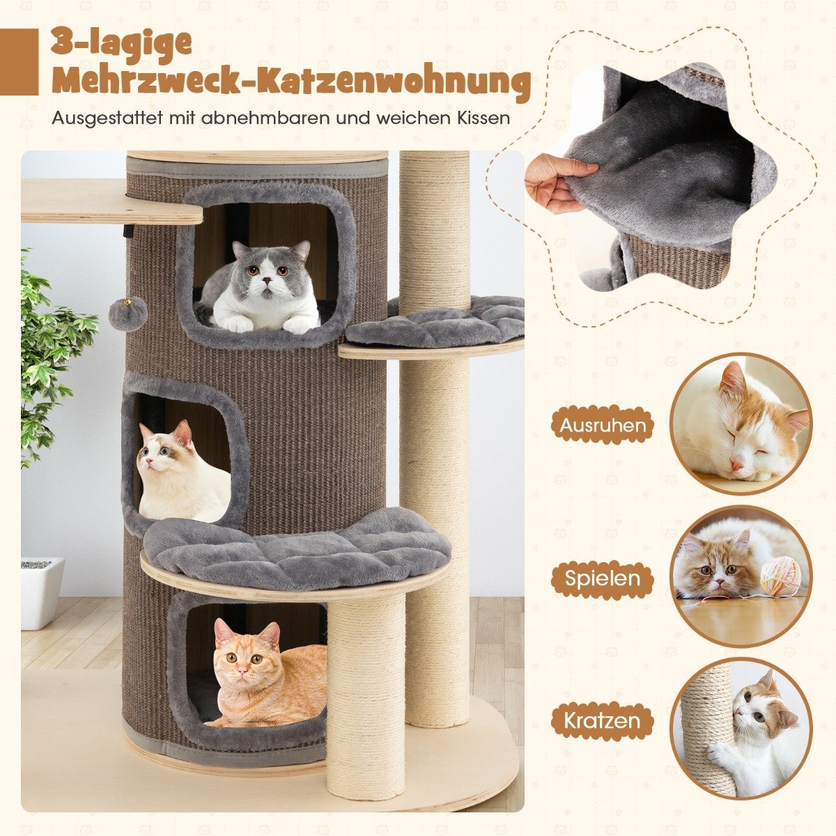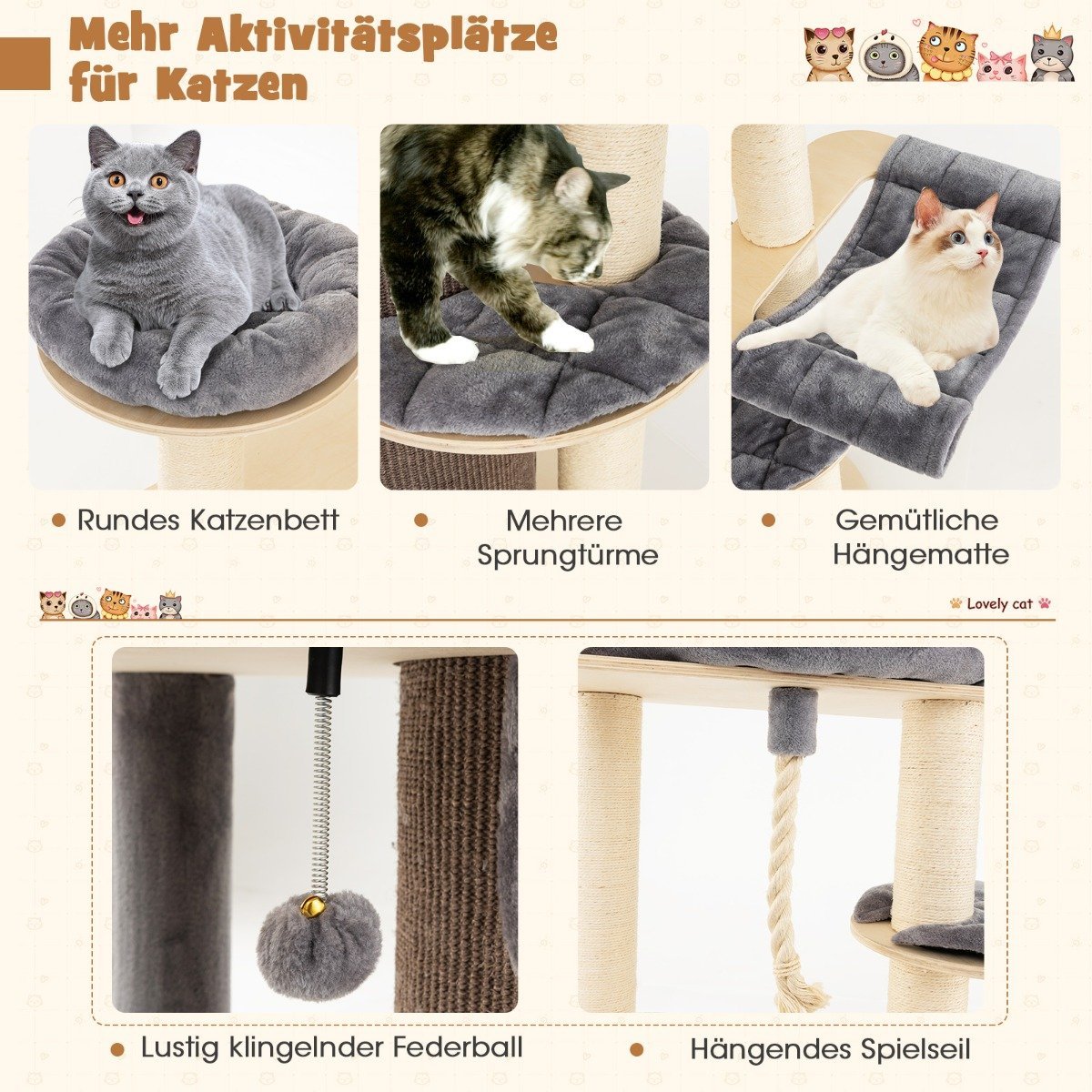 Daugiaaukštis katės namelis su draskyklėmis ir guoliu (Pilka)
