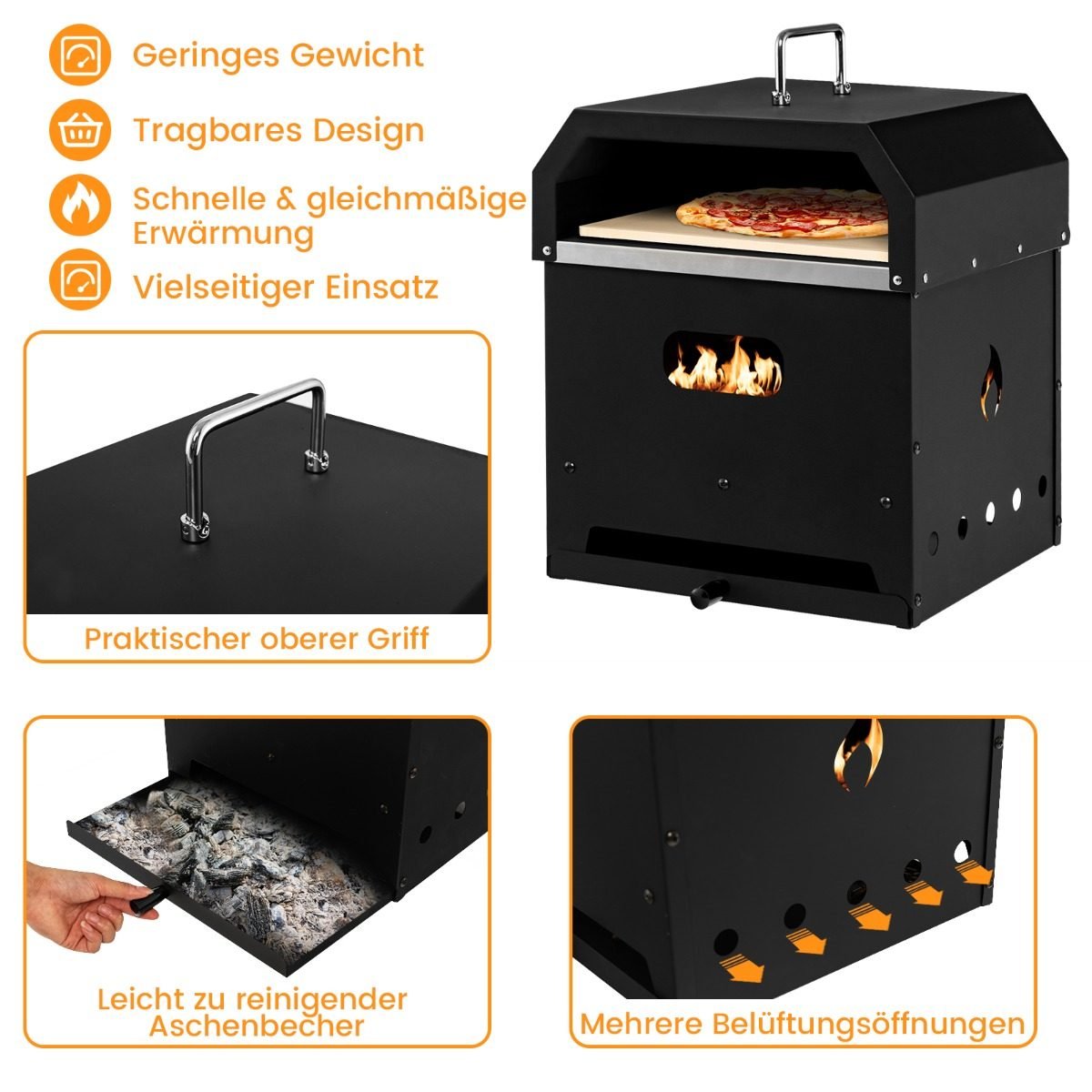 Daugiafunkcė 4-in-1 lauko krosnelė su dangčiu (Juoda)