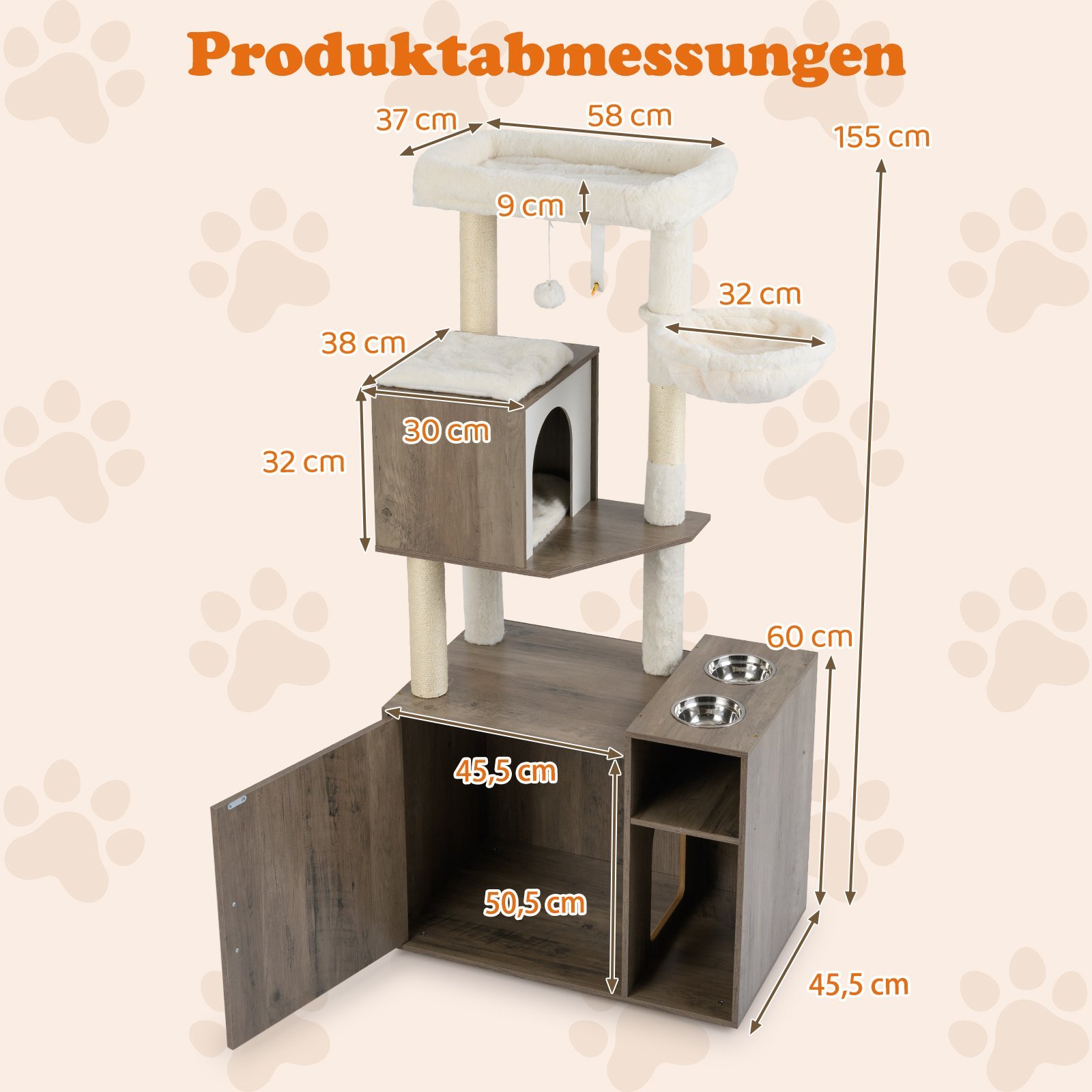 Ieškote sprendimo, kuris taupo vietą ir patenkina visus jūsų katės poreikius? Ši daugiafunkcinė kačių spintelė – puikus pasirinkimas. Ji sujungia stilingą kačių bokštą ir paslėptą kraiko dėžės vietą, efektyviai išnaudodama grindų plotą ir suteikdama įvairias naudojimo galimybes. Šis baldas ne tik puikiai įsilieja į jūsų namų interjerą, bet ir sukuria idealią aplinką jūsų katei žaisti, ilsėtis ir ramiai atlikti gamtinius reikalus privatumoje.