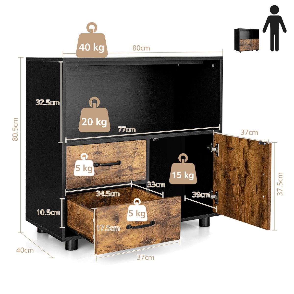 - Produkto matmenys: 80 x 40 x 80,5 cm (I x P x A)