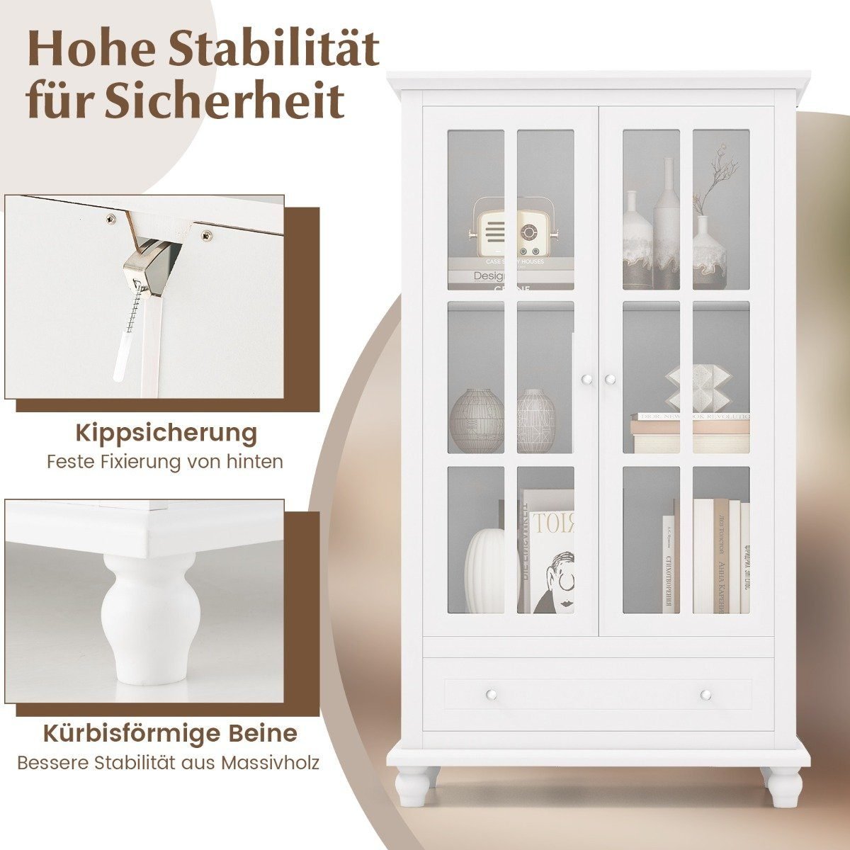 Daugiafunkcinė laikymo spintelė su stiklinėmis durimis ir reguliuojama lentyna (Balta)