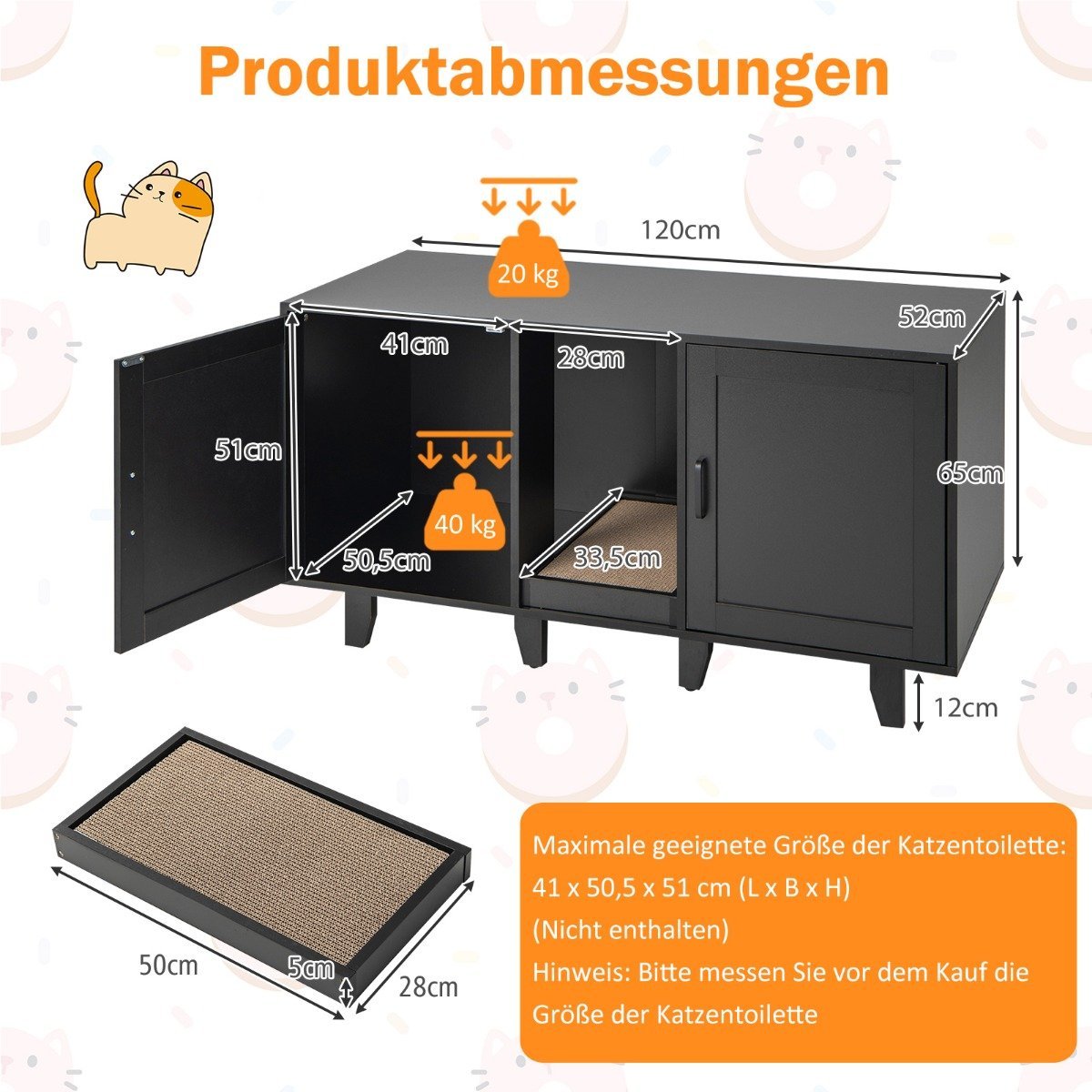 Suteikite savo katei jaukią ir privačią erdvę su šiuo daugiafunkciu baldu. Ši spintelė-namelis ne tik puikiai paslėps kraiko dėžę ir padės palaikyti švarą jūsų namuose, bet ir tarnaus kaip stilingas TV staliukas ar elegantiškas šoninis baldas. Dėl universalaus dizaino ji harmoningai įsilies į bet kokį interjerą, pasiūlydama estetišką ir praktišką sprendimą.