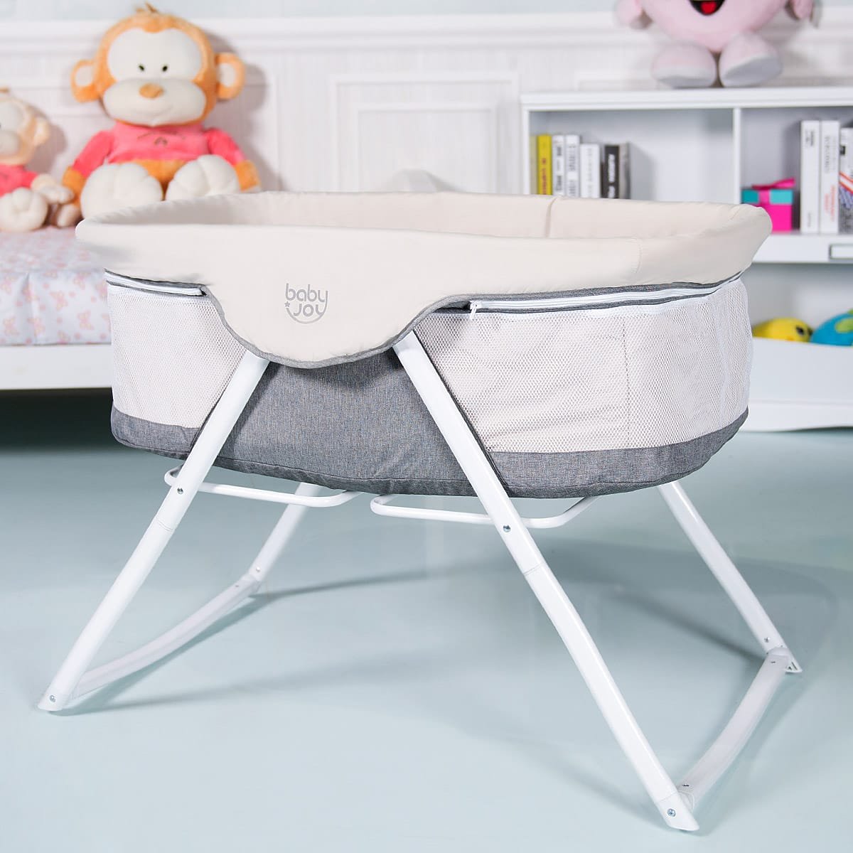 Daugiafunkcinė sulankstoma kelioninė lovelė-lopšys su čiužiniu (Pilka)