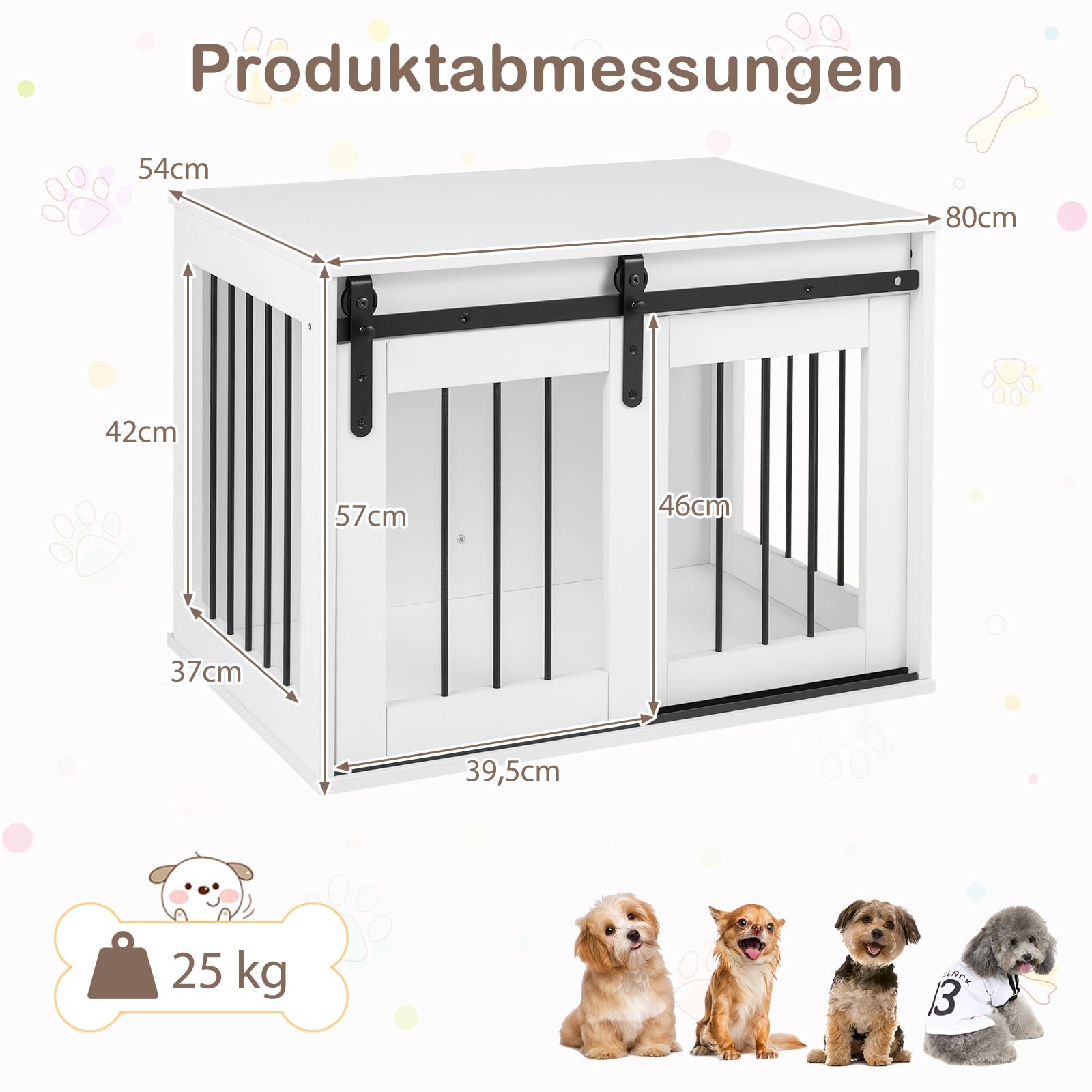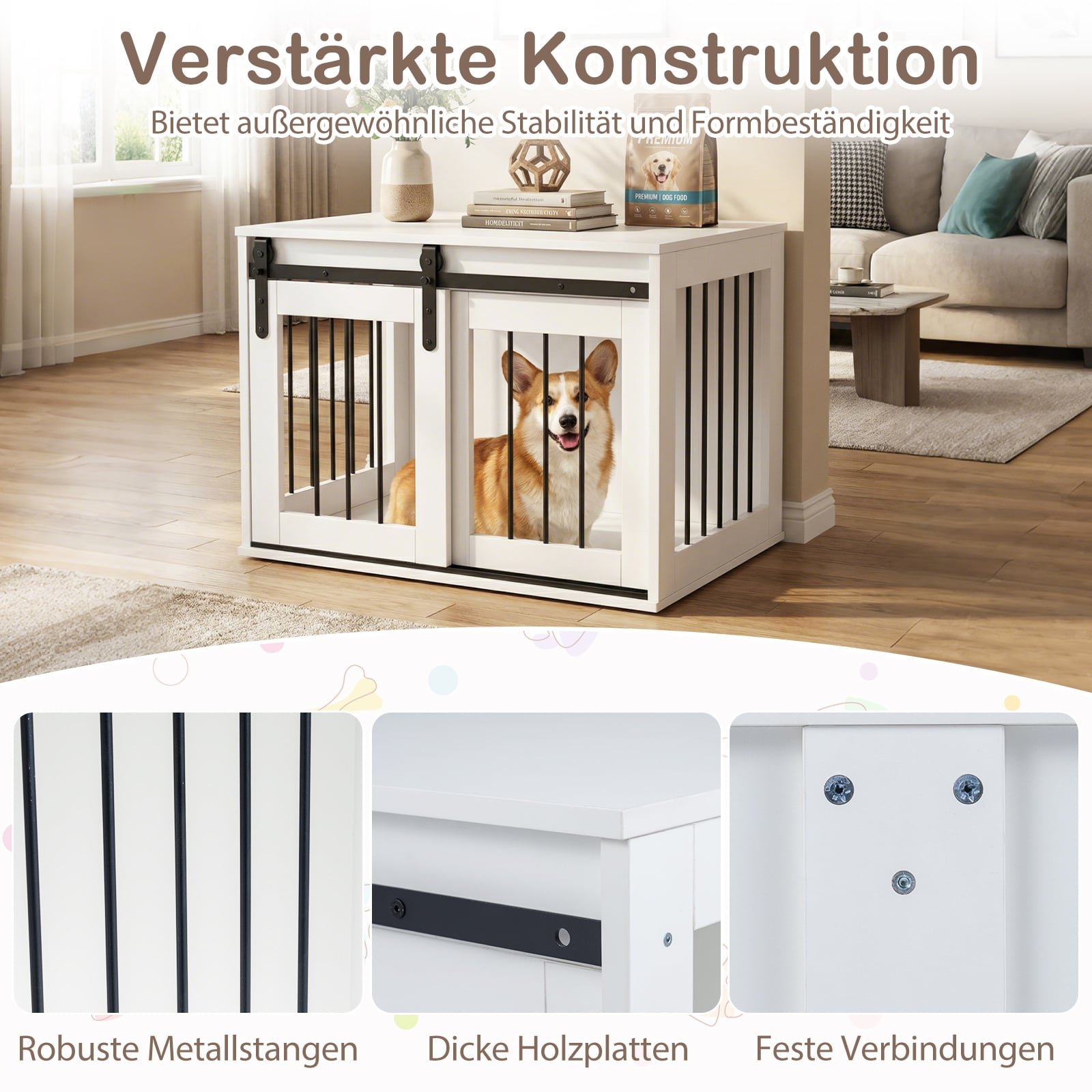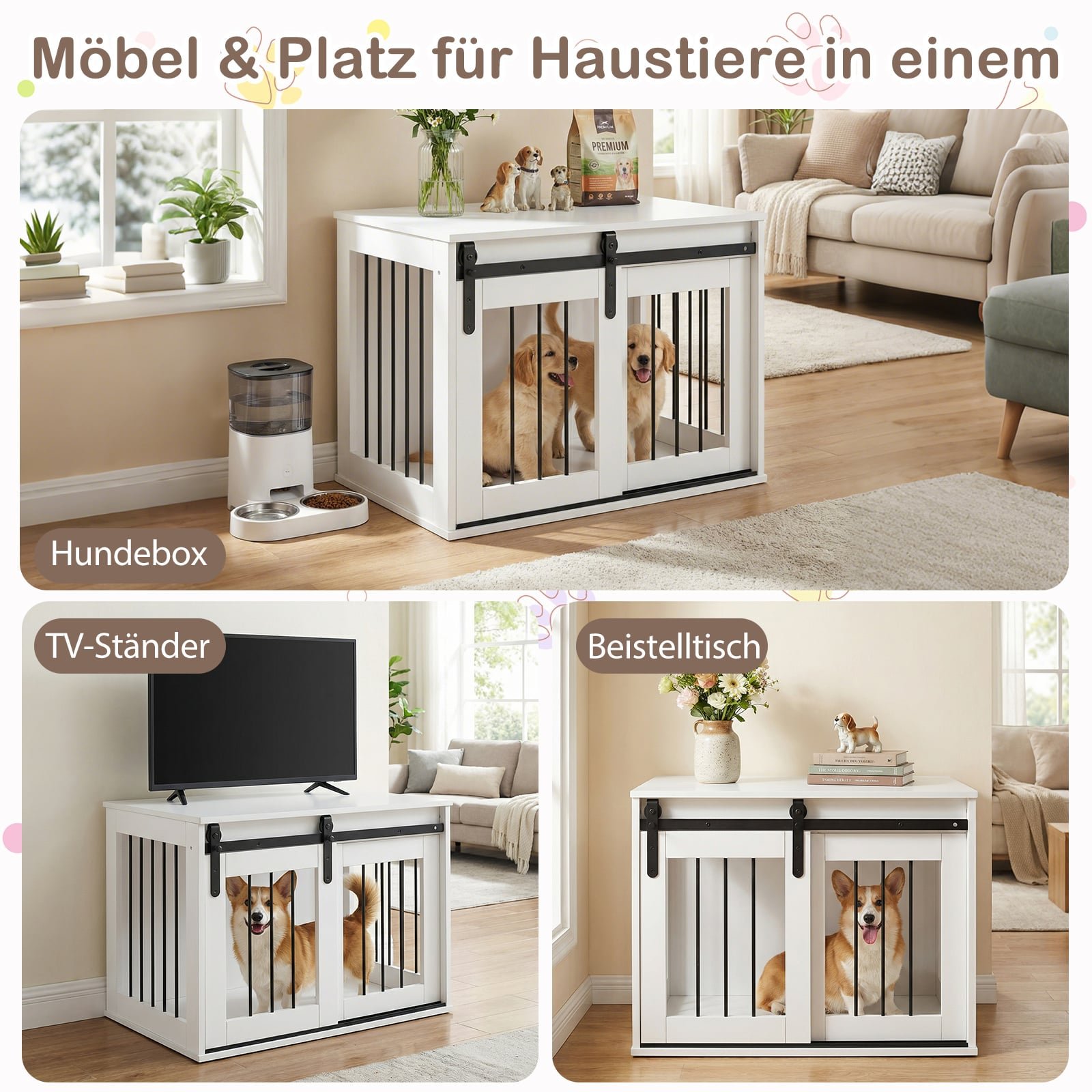 Daugiafunkcinė šunų dėžė su stumdomomis durimis ir šoniniu staliuku (Balta)