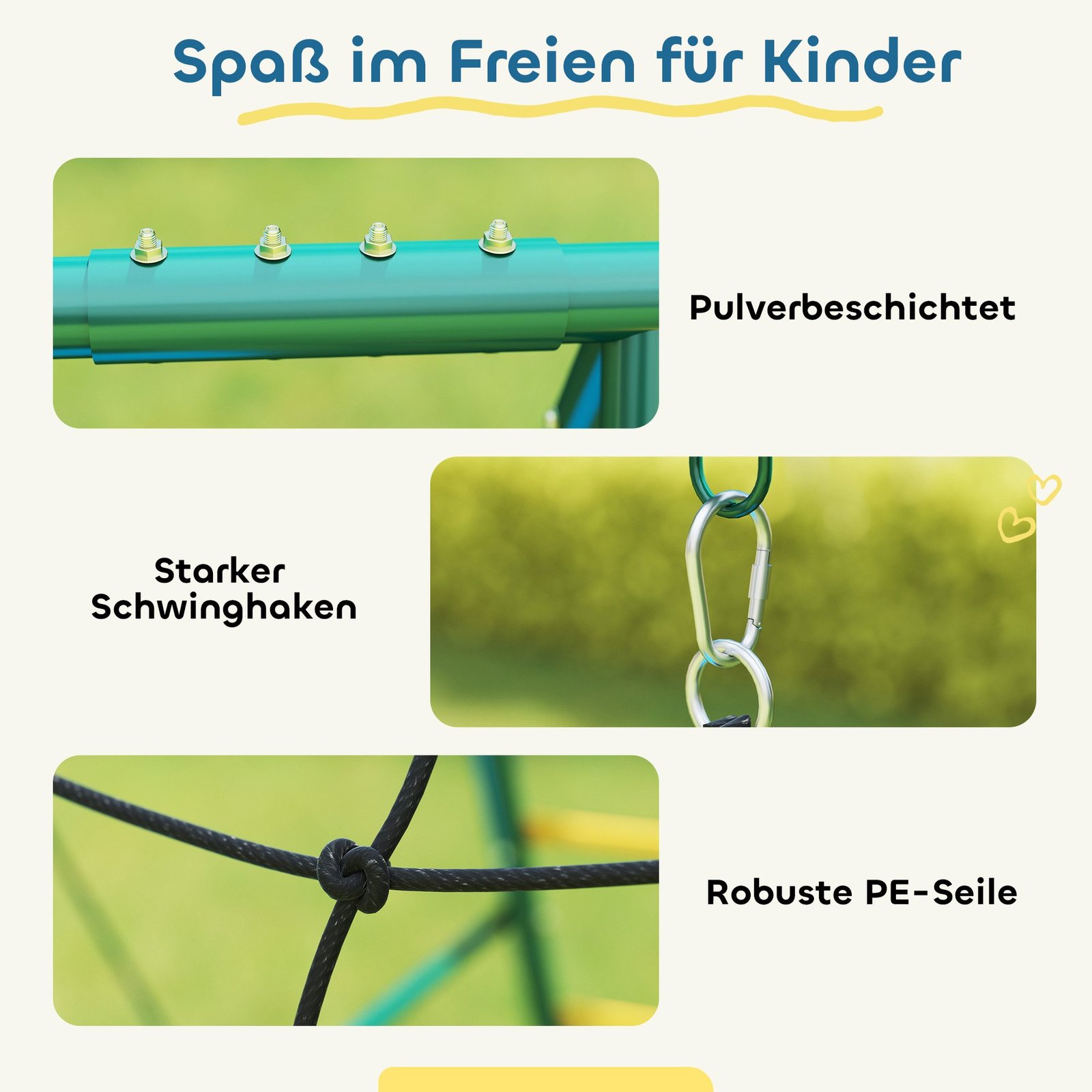 ✔ Pagamintos iš tvirto plieninio A formos rėmo, šios vaikiškos sūpynės išlaiko iki 350 kg