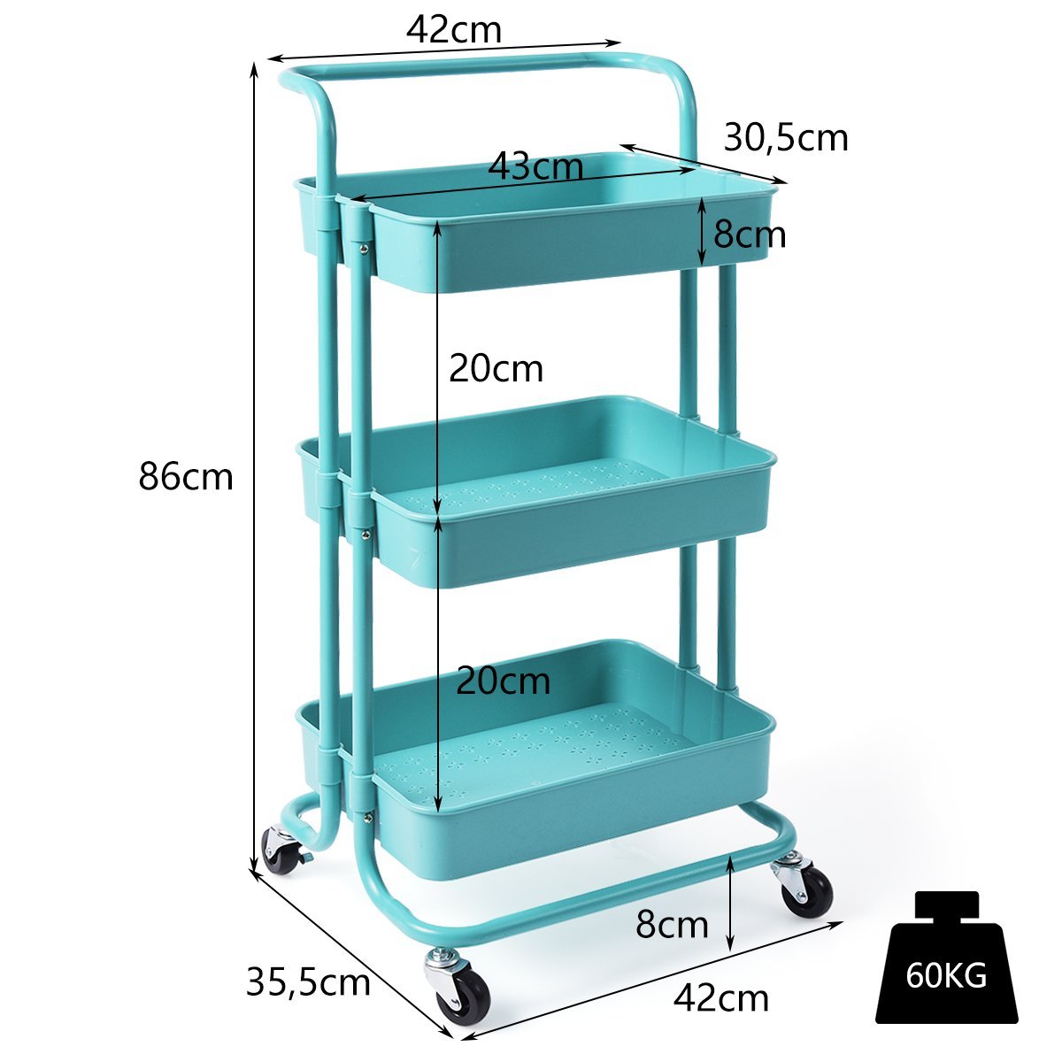 Daugiafunkcis 3 lentynų vežimėlis su rankena (Turkio)