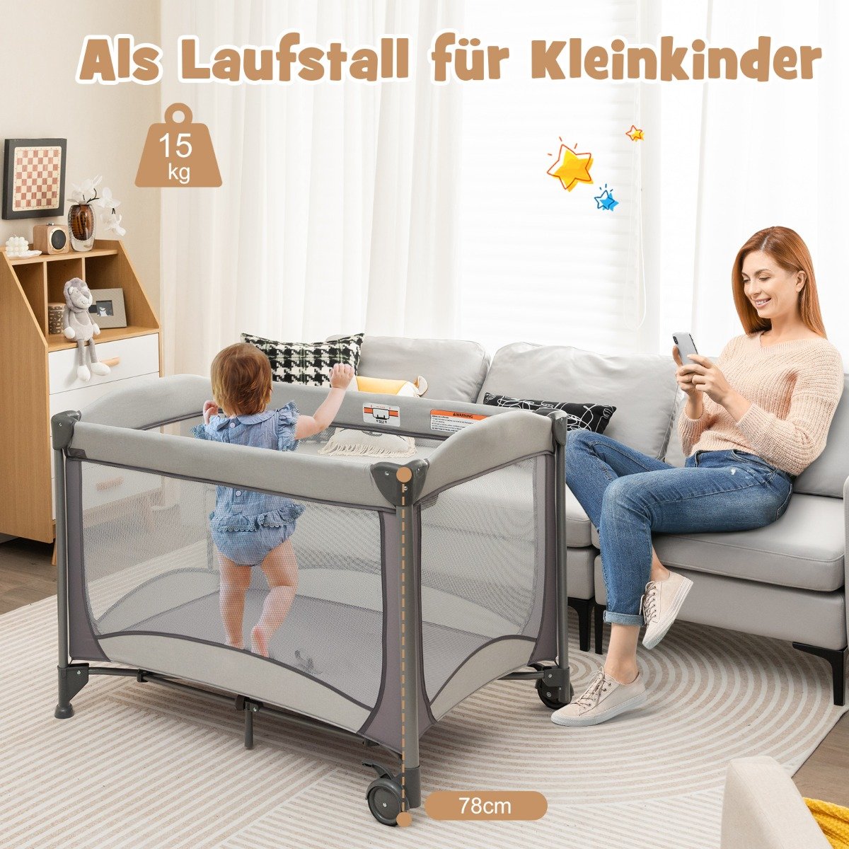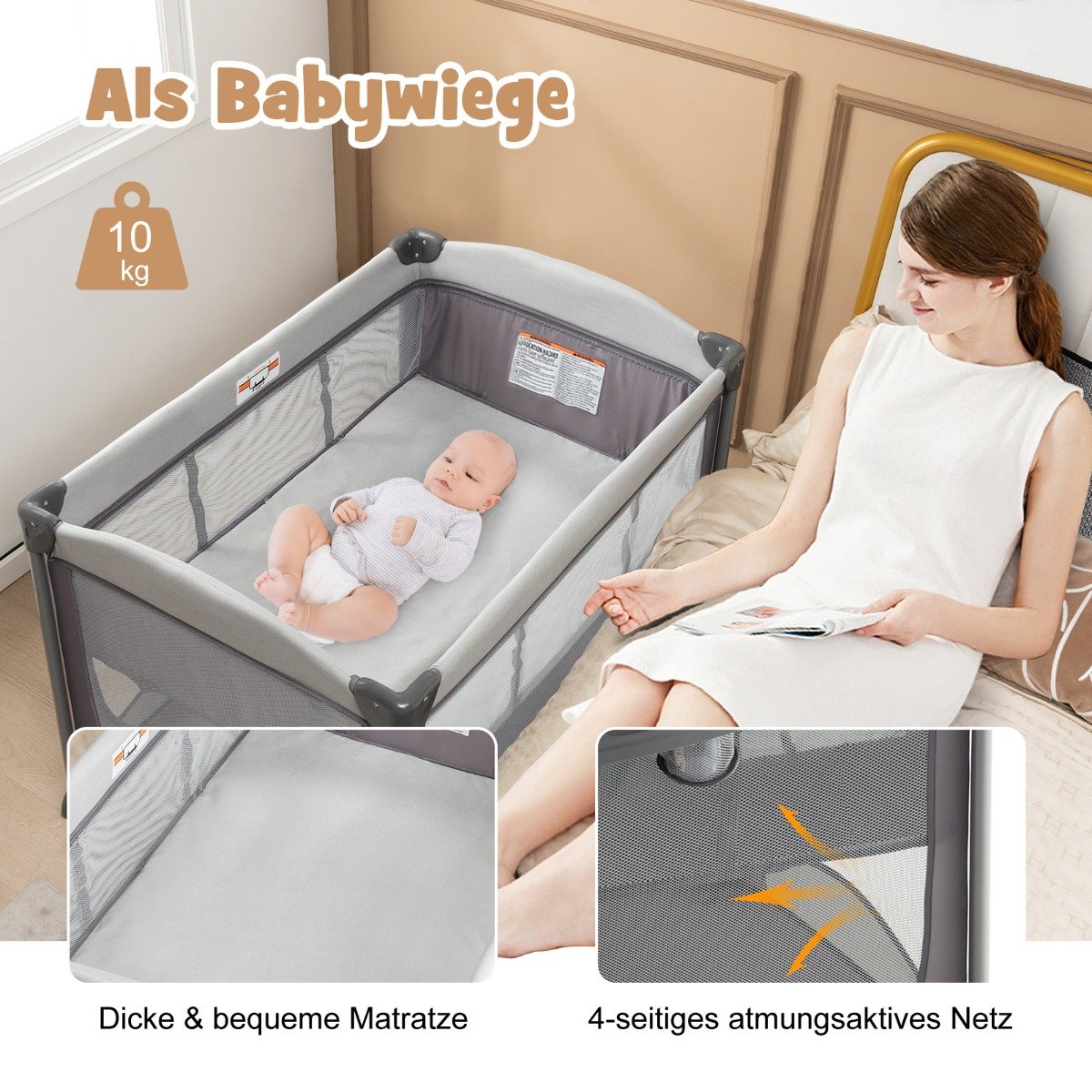 - Universali 5in1 funkcija: lovelė, lopšys, vystymo stalas, žaidimų aikštelė ir nešiojamas lopšys – viskas viename.