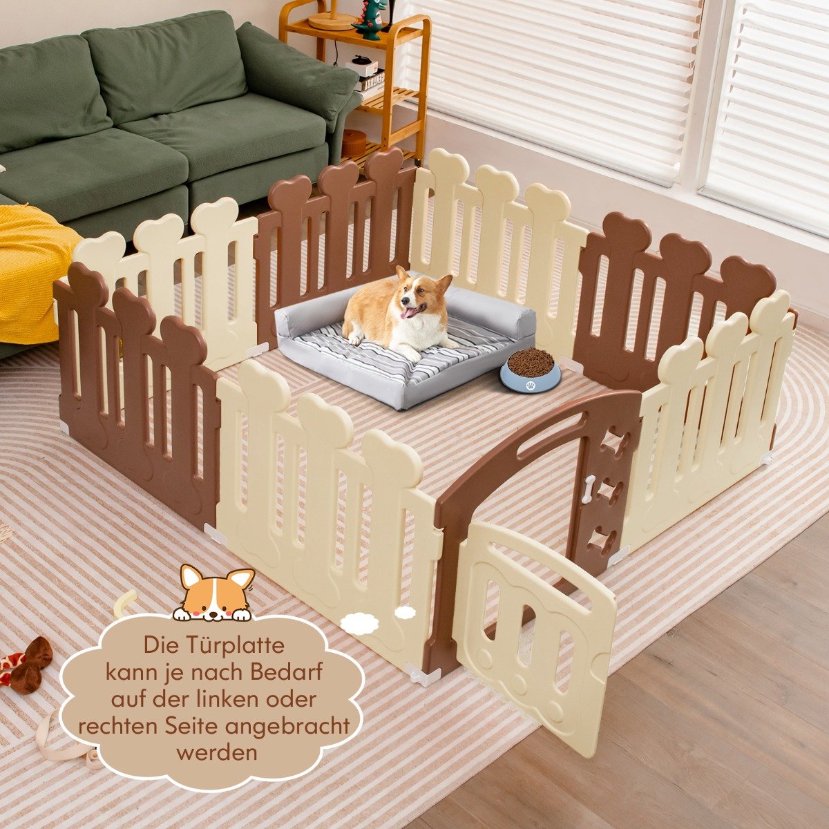 Suteikite savo mažyliui saugią ir erdvią žaidimų erdvę su šiuo patogiu 8 panelių aptvaru. Sukurtas atsižvelgiant į gyvūnų saugumą ir patvarumą, jis puikiai tinka tiek vidaus, tiek lauko sąlygomis.