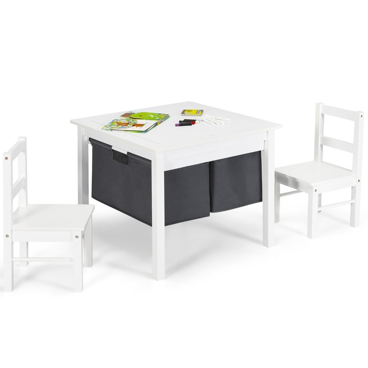 Daugiafunkcis aktyvumo staliukas su dviem kėdutėmis vaikams (Balta)