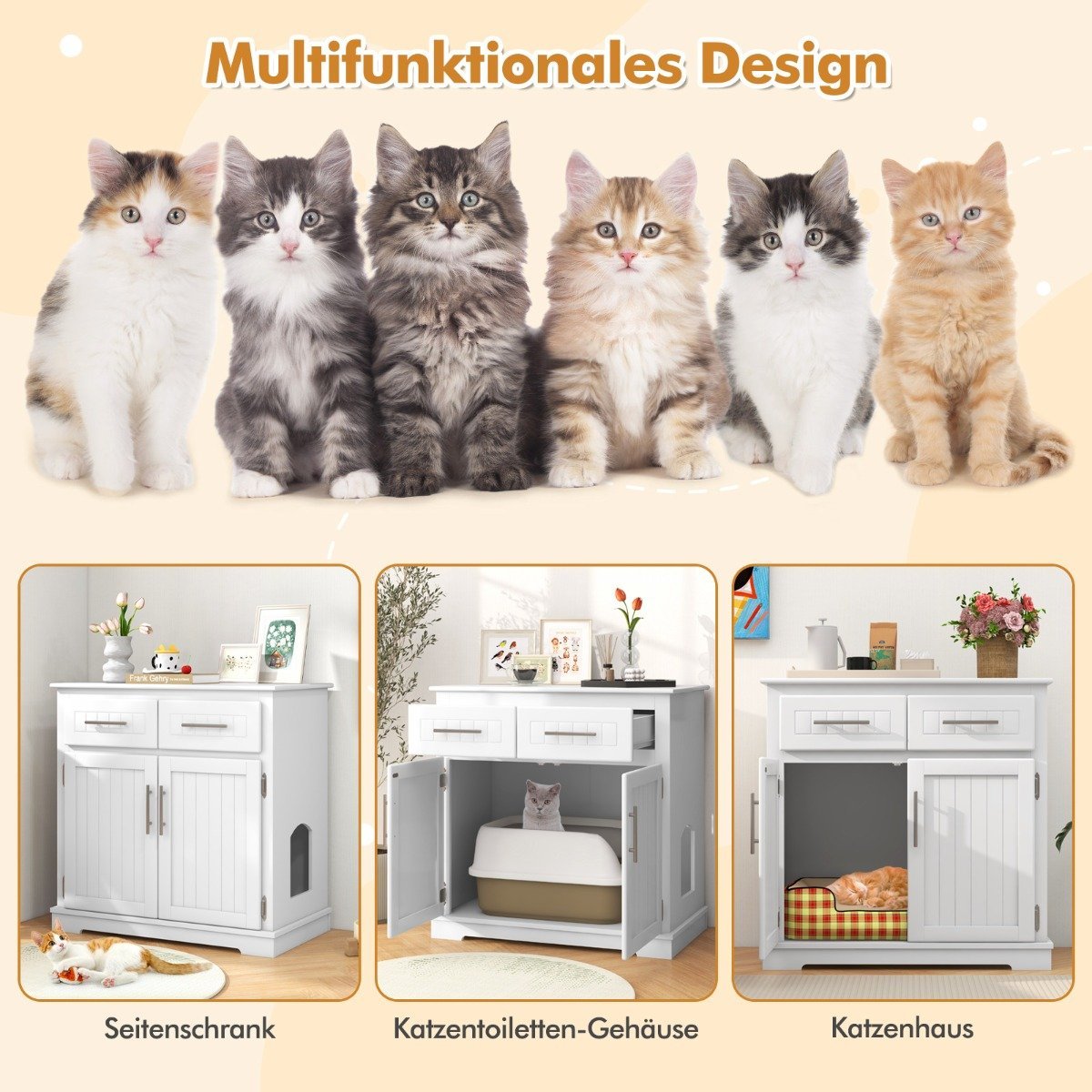 Daugiafunkcis Kačių Tualeto Spintelė su Sandėliavimo skyriumi (Balta)