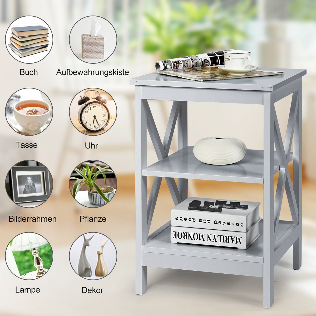 Ieškote staliuko svetainei ar miegamajam? Mūsų daugiafunkcis naktinis staliukas puikiai tiks įvairiose patalpose, kuriose reikia papildomos vietos daiktams laikyti ar eksponuoti. Pagamintas iš kokybiškų MDF plokščių su dažų danga, šis staliukas yra atsparus drėgmei ir itin stabilus. Dvi atviros lentynos suteikia pakankamai vietos vazoms, lempoms ar knygoms. Lygus, švelnus paviršius ir elegantiškas dizainas lengvai dera prie Jūsų esamų baldų.