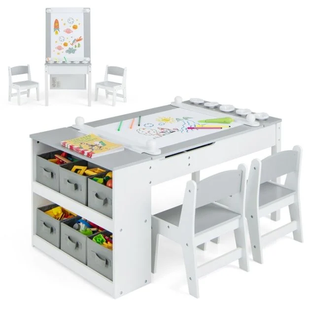 Atveria naujas kūrybines galimybes su šiuo novatorišku 3-in-1 aktyvumo stalu! Jis lengvai transformuojasi iš interaktyvaus stalo į meno stovą, skatindamas vaikų vaizduotę ir kūrybiškumą. Sukurtas apgalvoto dizaino ir saugumo detalių, šis stalas taps puikiu pagalbininku jūsų mažiesiems.