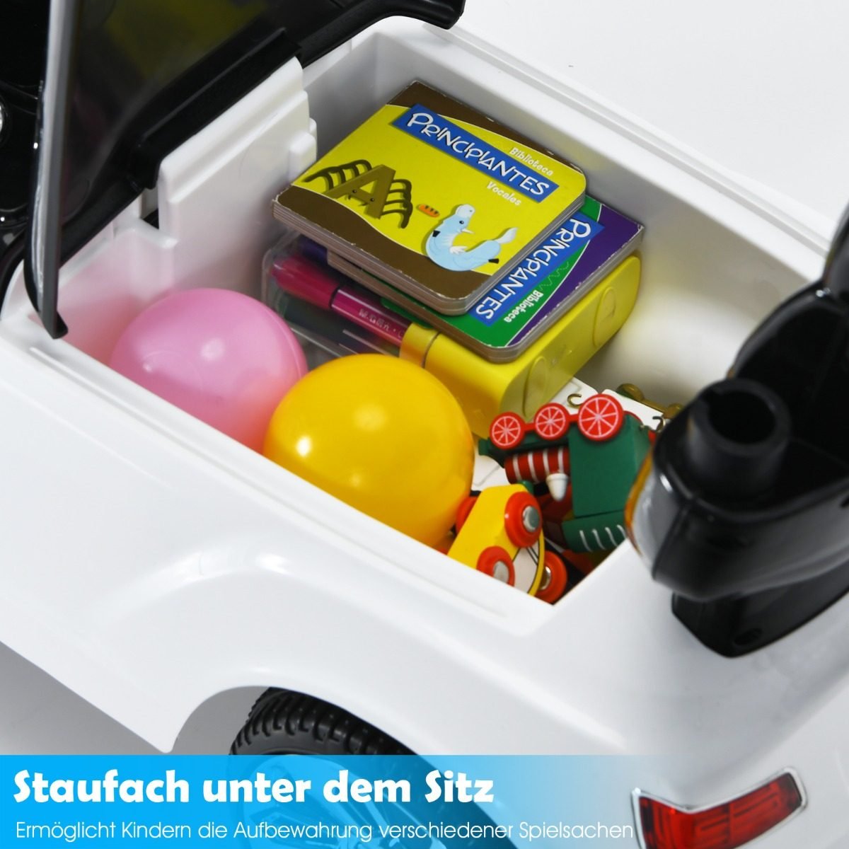 Daugiafunkcis vaikiškas automobilis 3in1 su stogeliu ir daiktadėže (Balta)