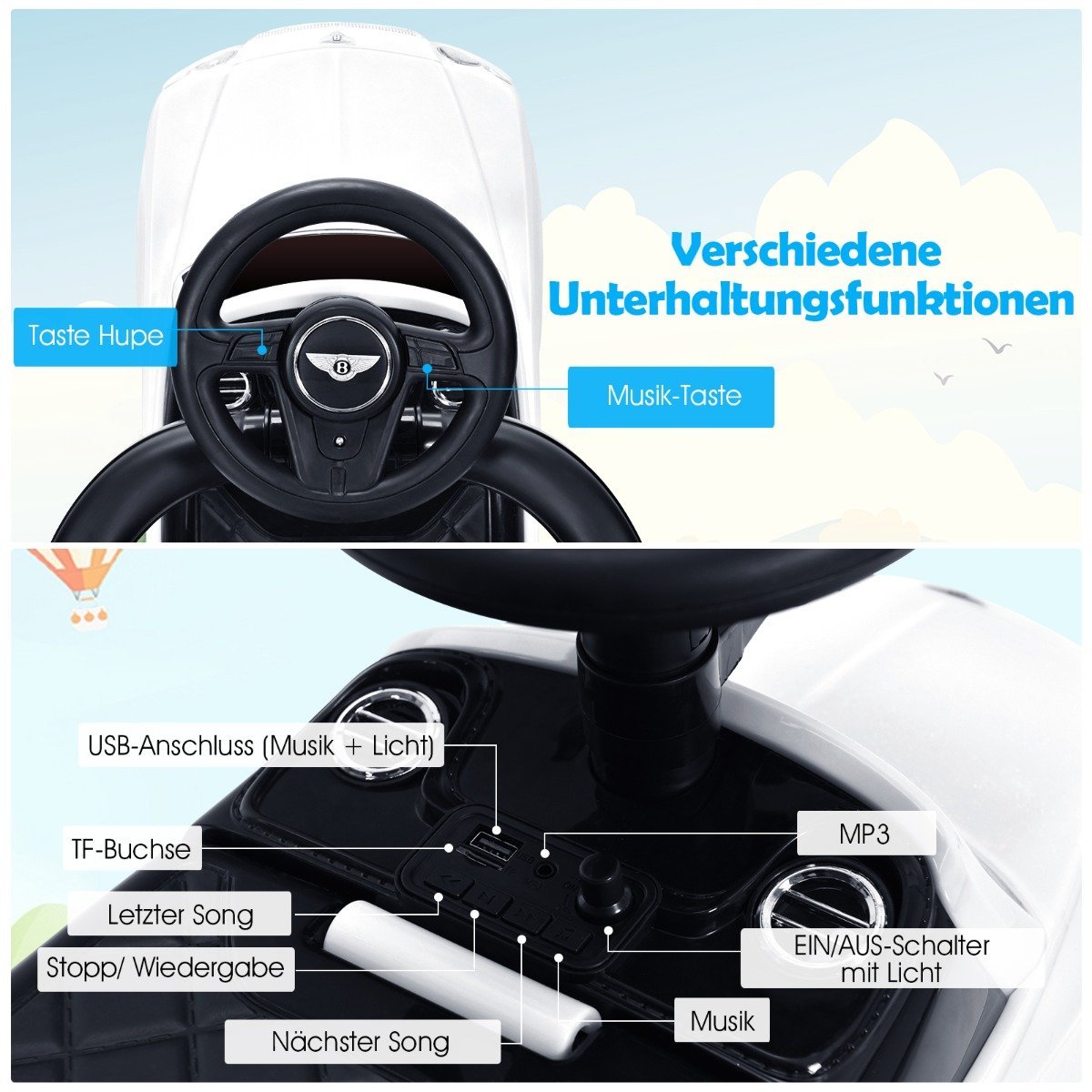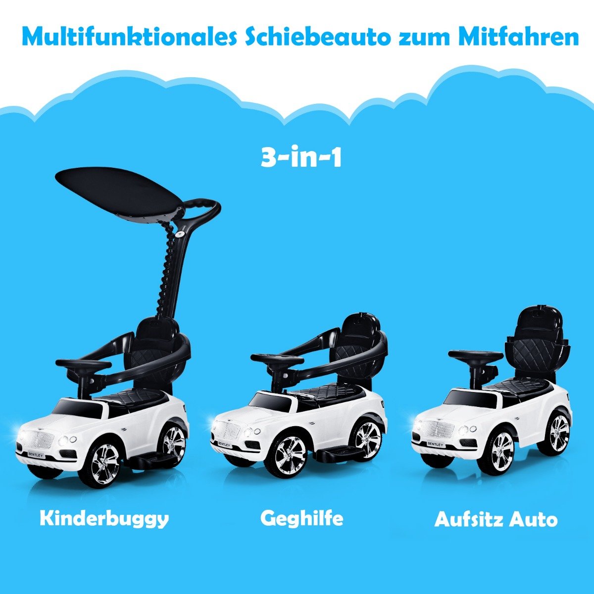 Daugiafunkcis 3in1 vaikiškas automobilis – tai puiki dovana mažiesiems, užtikrinanti daugybę pramogų ir saugumą. Jo universalus dizainas leidžia jį naudoti kaip vežimėlį, atramą mokantis vaikščioti arba paspiriamą automobilį.