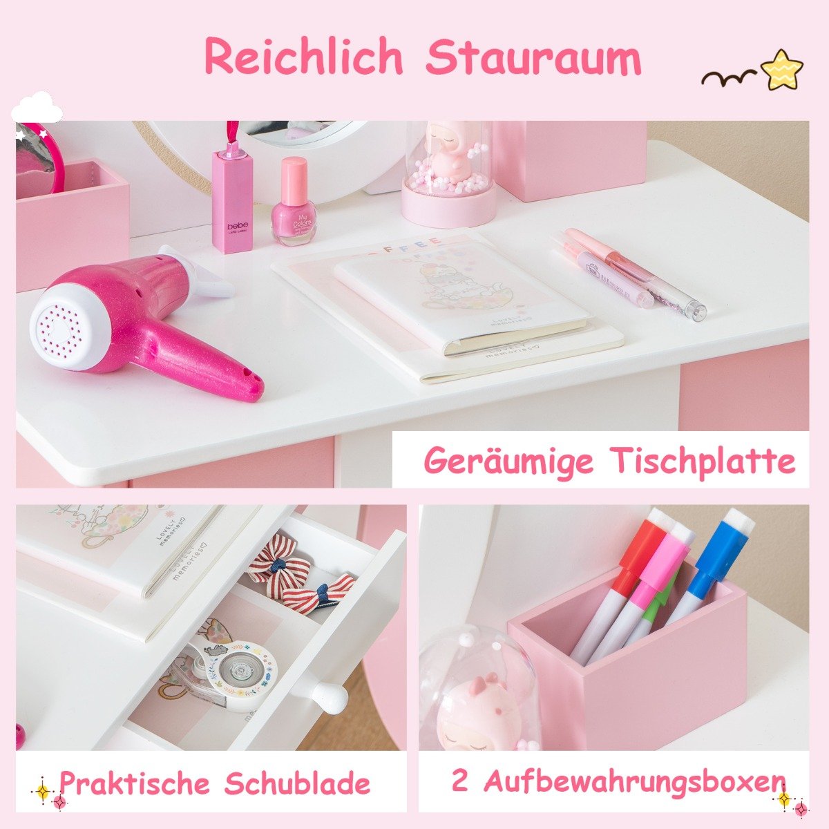 Daugiafunkcis vaikiškas tualetinis staliukas su veidrodžiu ir kėdute (Rožinė)