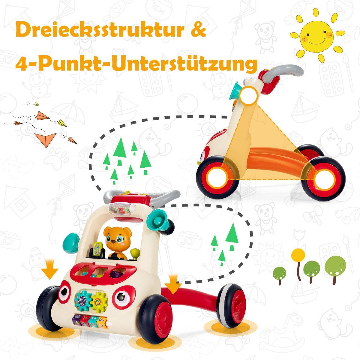 Suteikite savo mažyliui nepaprastą pagalbą pirmaisiais žingsneliais su šiuo daugiafunkciu vaikščiokliu! Sukurtas skatinti judėjimą ir lavinti motoriką, jis pavers kiekvieną dieną nauju atradimu.