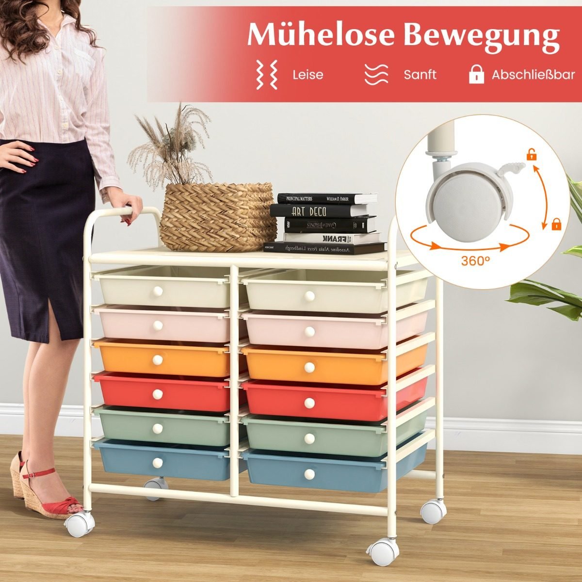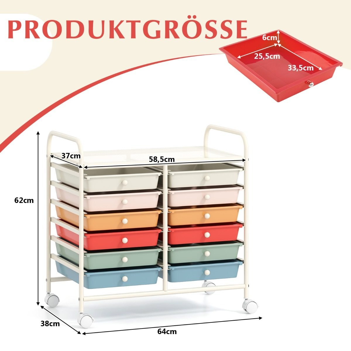 Daugiafunkcis vežimėlis su 12 stalčiukų ir lentyna (Spalvotas)