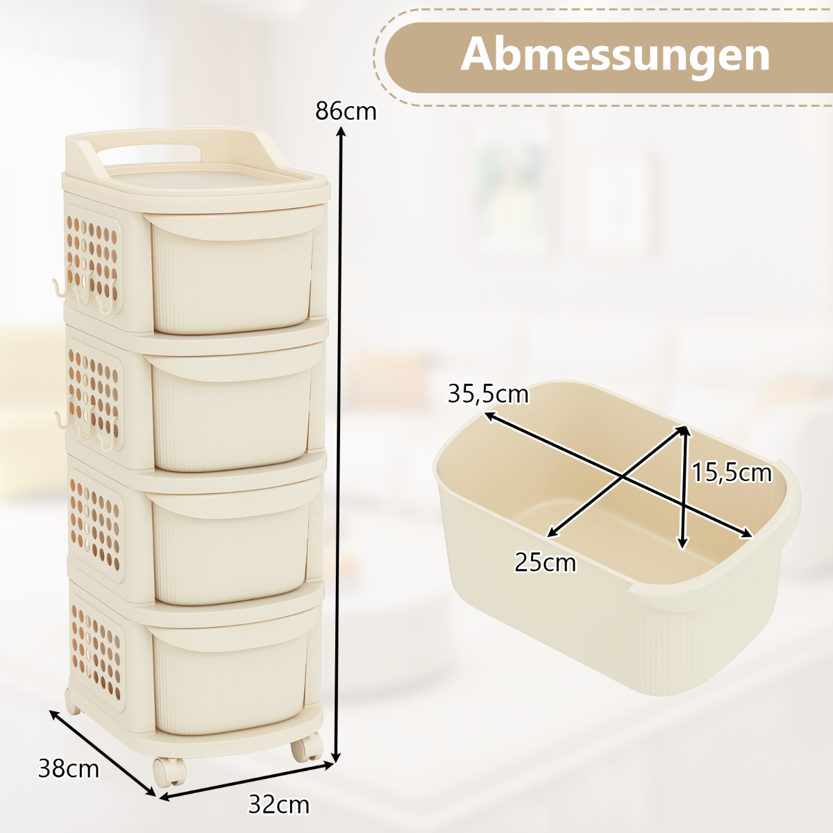 - Vidiniai stalčių matmenys (I x P x A): 35,5 x 25 x 15,5 cm