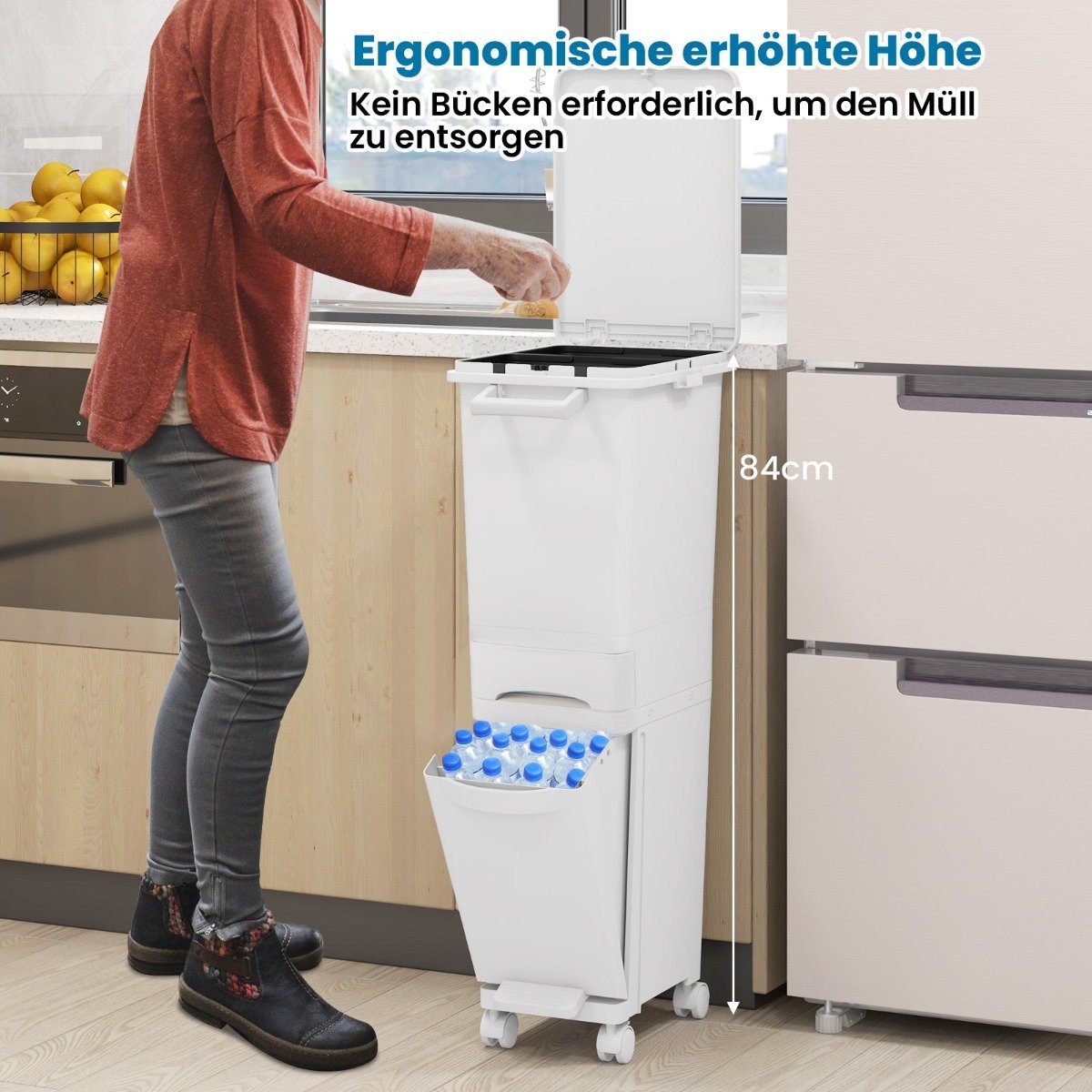 Padidinkite savo virtuvės funkcionalumą su šiuo universaliu 3-in-1 šiukšliadėžės sprendimu. Sukurtas palengvinti atliekų rūšiavimą ir kasdienį naudojimą, jis yra puikus pasirinkimas bet kuriam namų ūkiui.