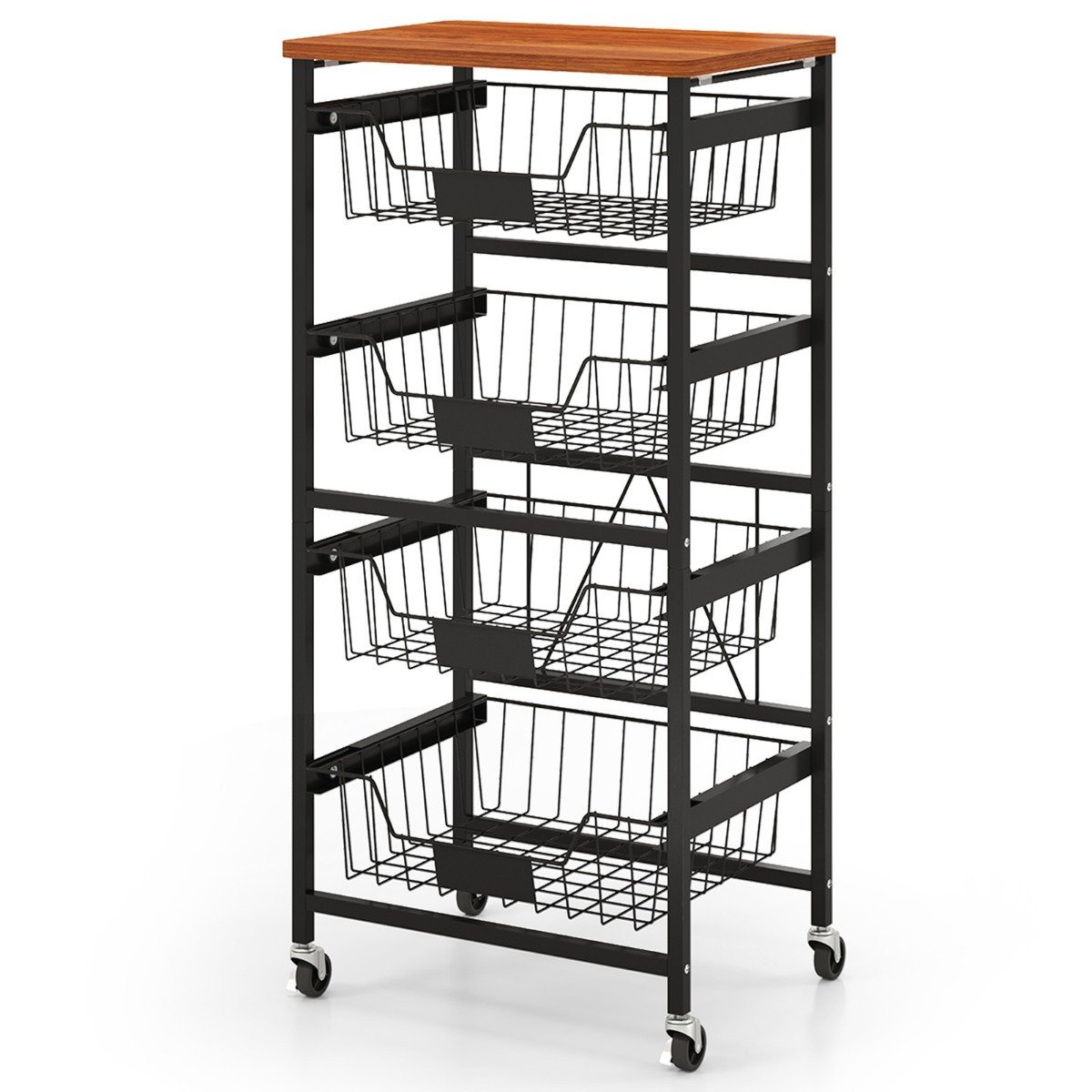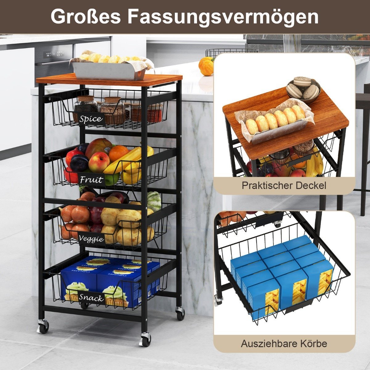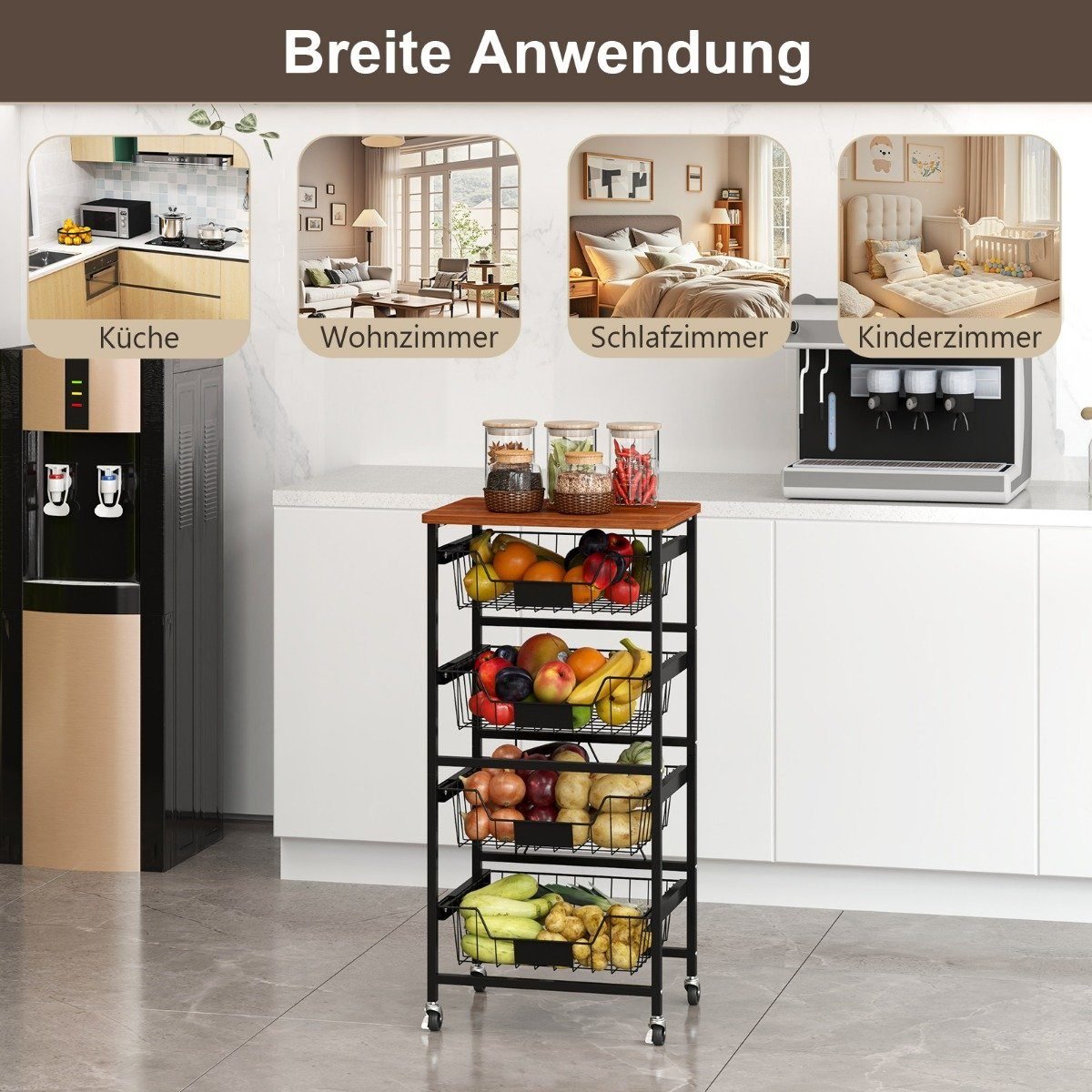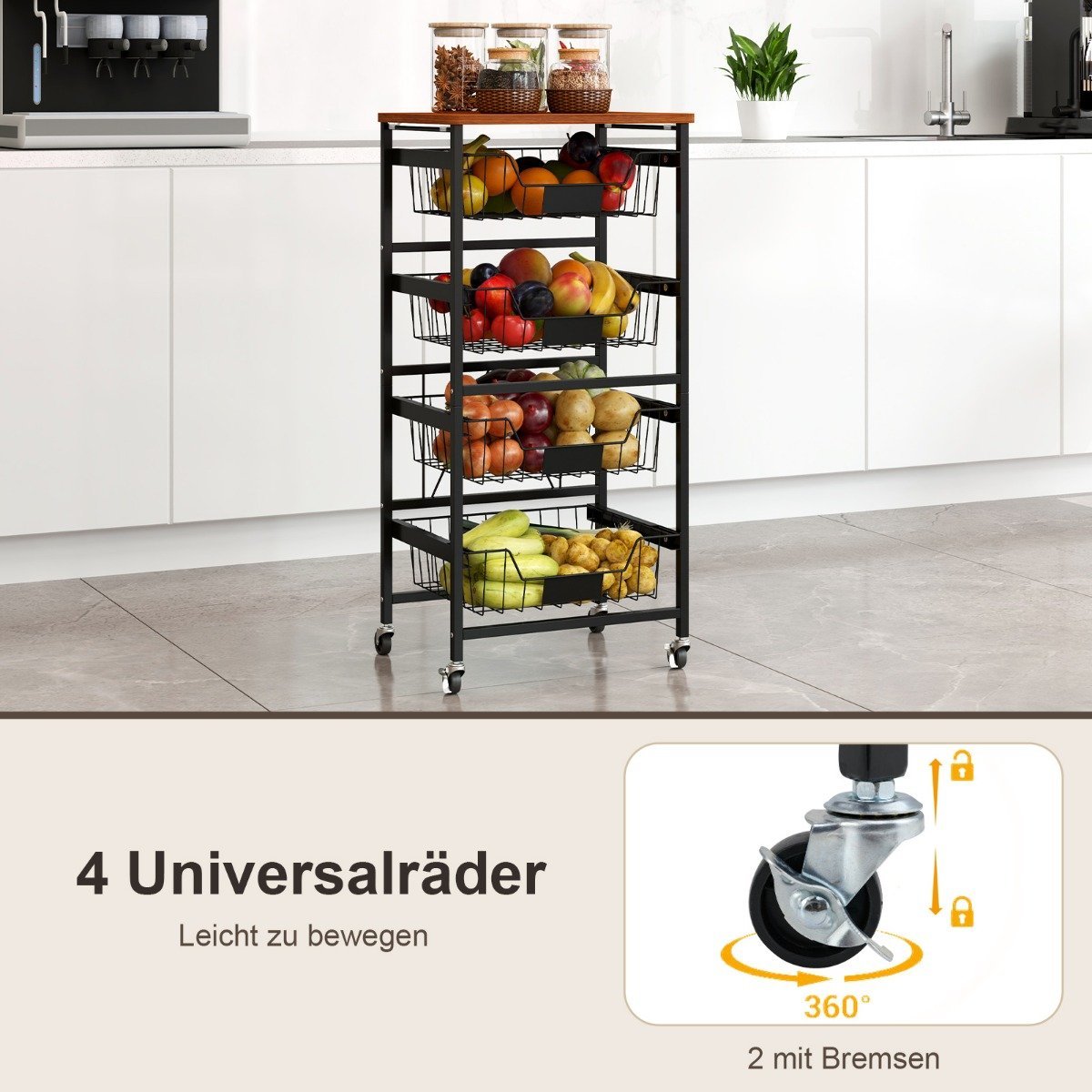 Daugiafunkcis virtuvės vežimėlis su keturiais ištraukiamais krepšiais (Juoda)