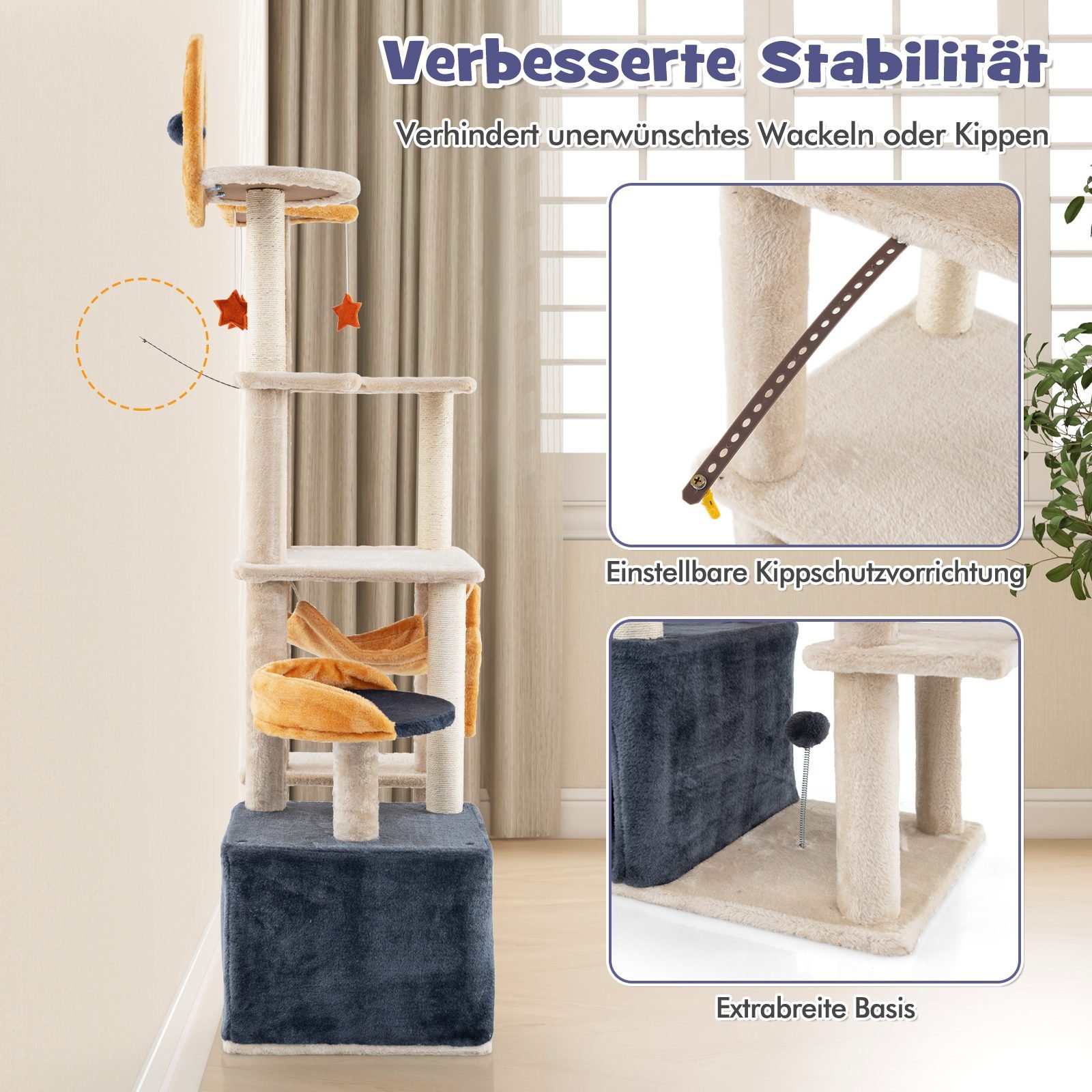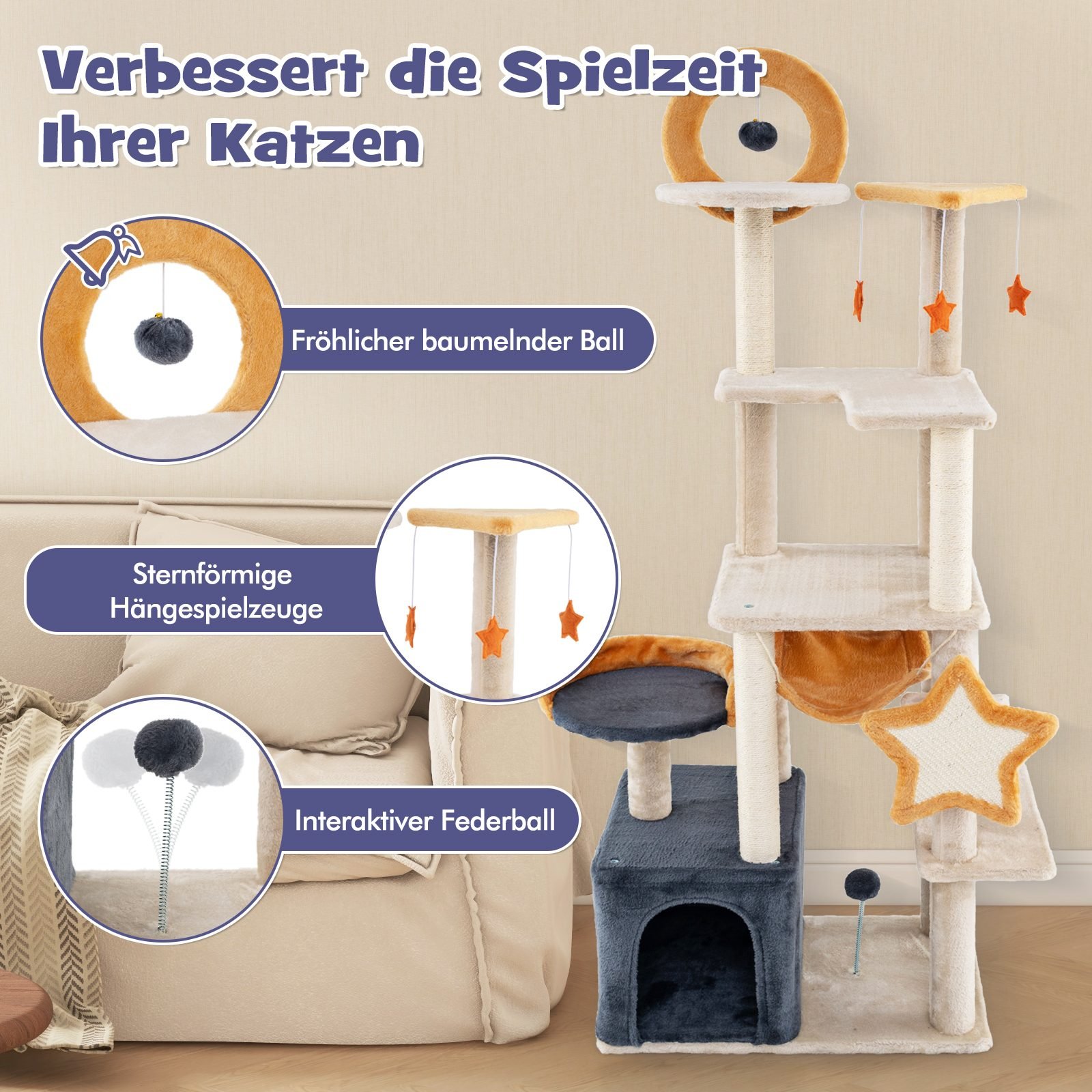 Daugiapakopis katės namelis su draskyklėmis 160 cm (Smėlio)