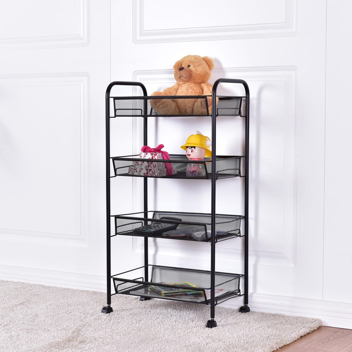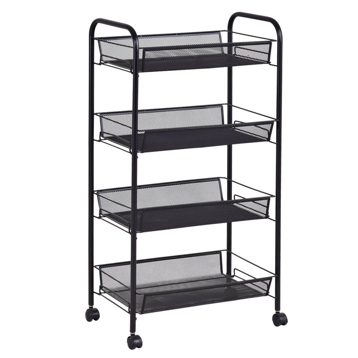 Daugiatikslis virtuvės vežimėlis su keturiomis lentynomis ir ratukais (Juoda)