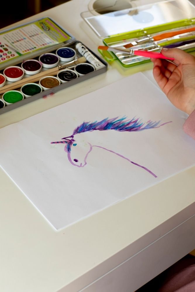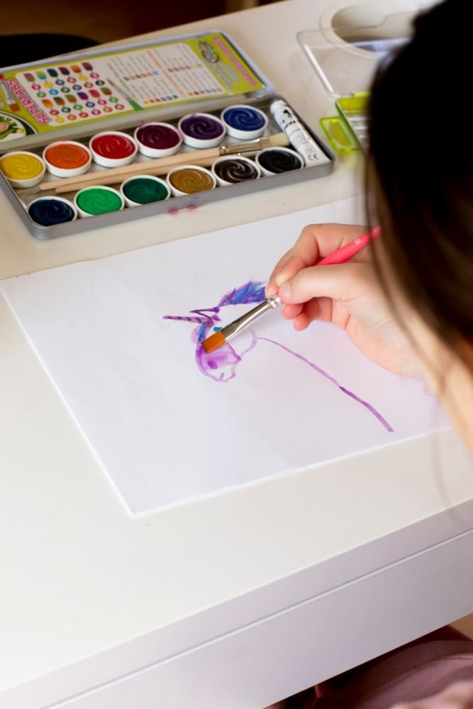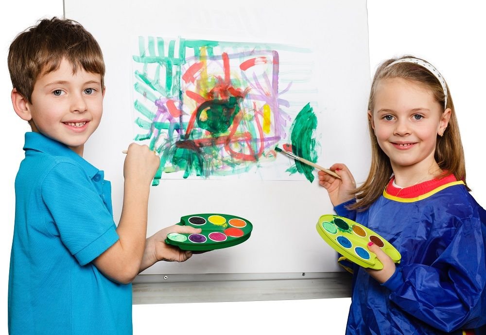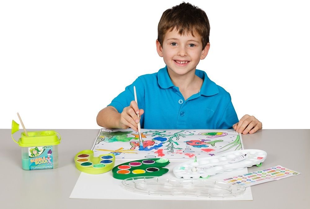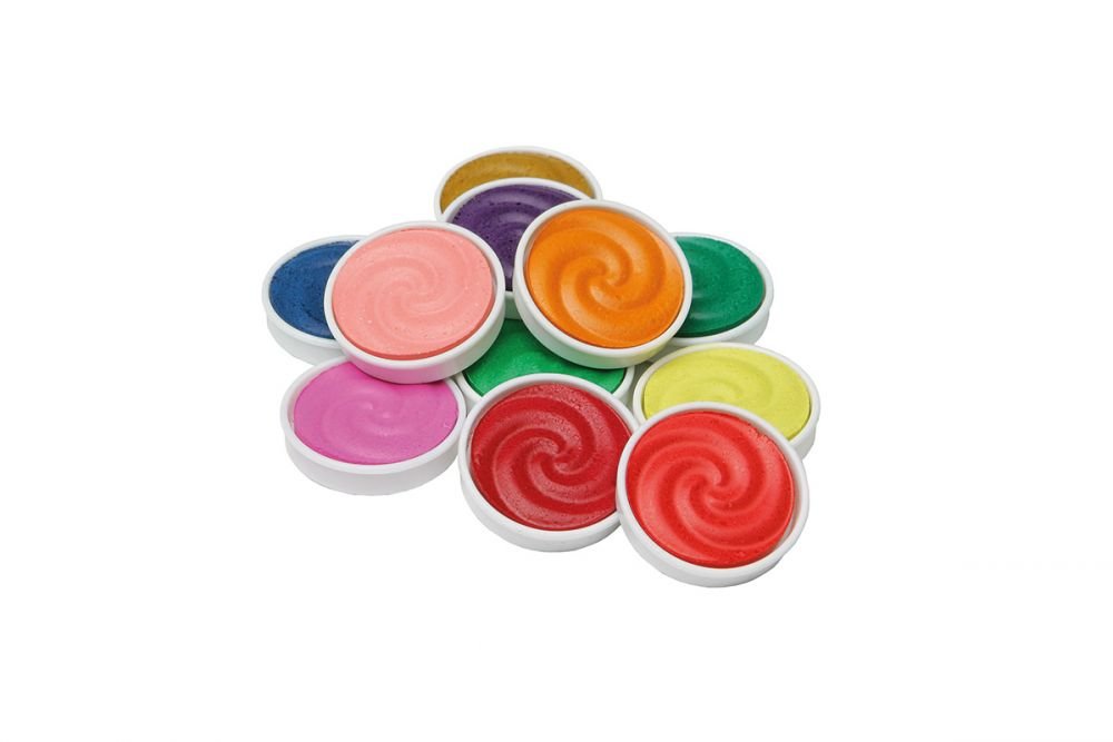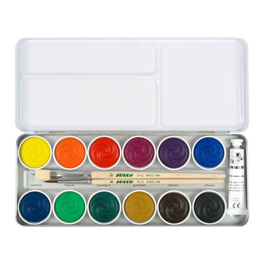 Dažų rinkinys su 12 spalvų, baltu ir teptukais