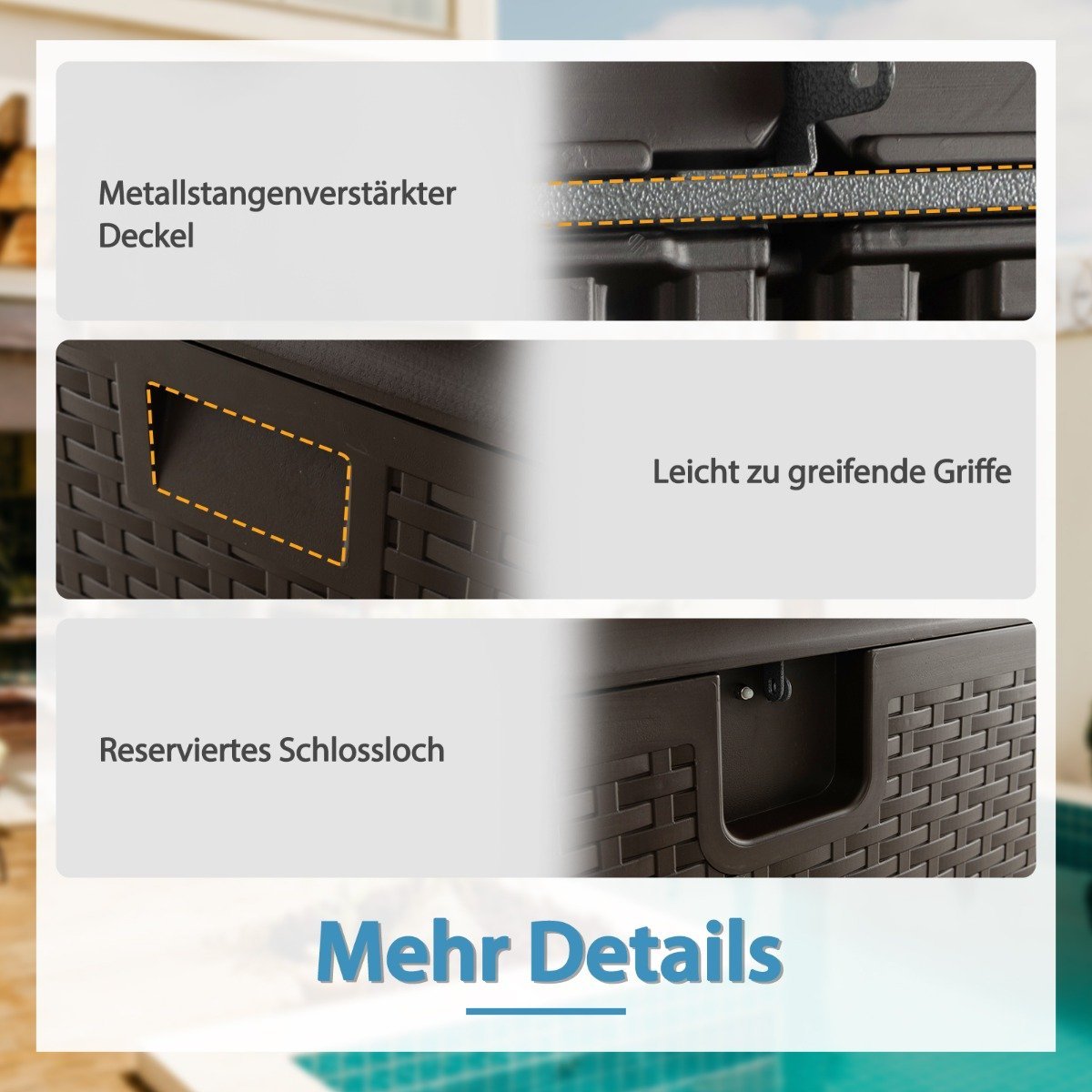 Sutvarkykite savo lauko erdvę su šia erdvia ir funkcionalia sodo daiktadėže. Ji ne tik suteikia daug vietos daiktams laikyti, bet ir gali būti naudojama kaip patogus suoliukas.