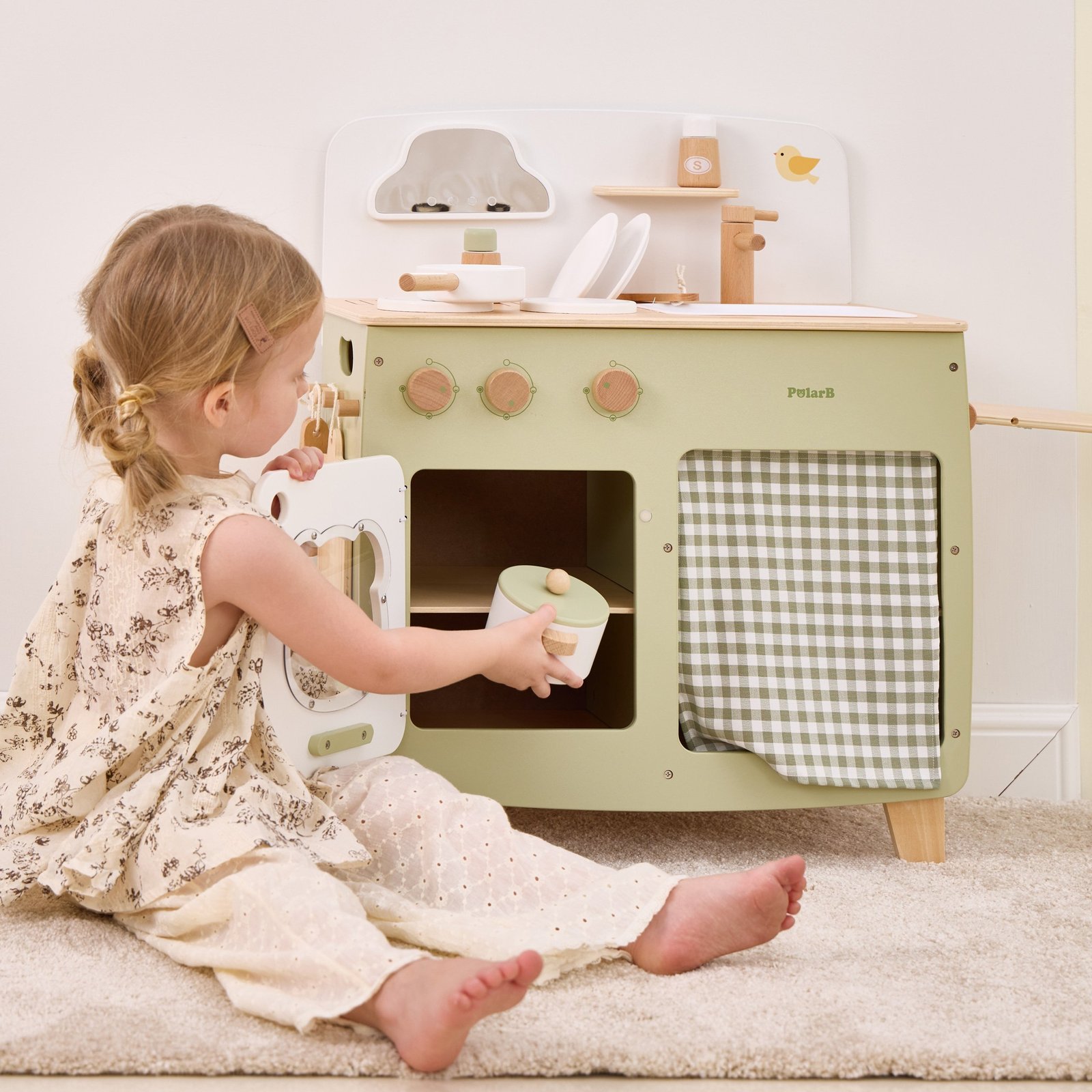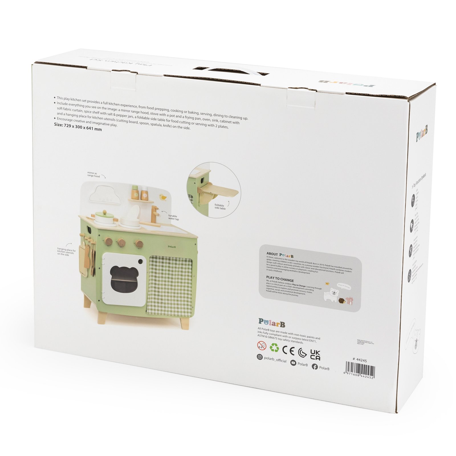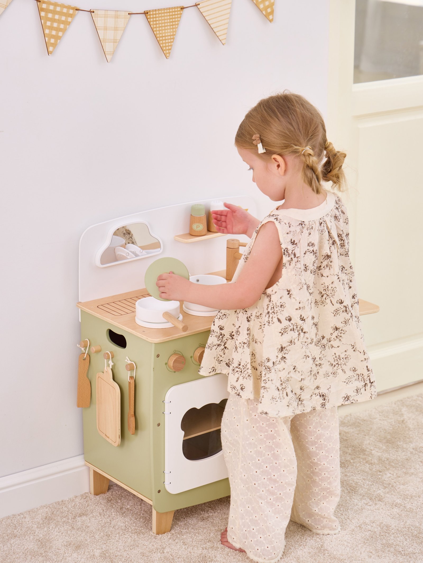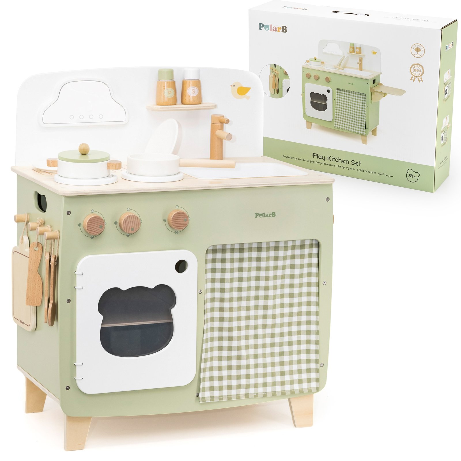 Ši medinė virtuvėlė – puikus pasirinkimas ieškantiems kokybiško ir patvaraus žaislo savo vaikui. Ji sukurta taip, kad mažylis pasijustų tikru virtuvės šefu! Veidrodinis gartraukis, viryklė ir orkaitė – tai tik dalis patogumų, kuriuos siūlo ši virtuvėlė. Žaidimas lavina vaizduotę, skatina kūrybiškumą ir moko naudotis virtuvės įrankiais.