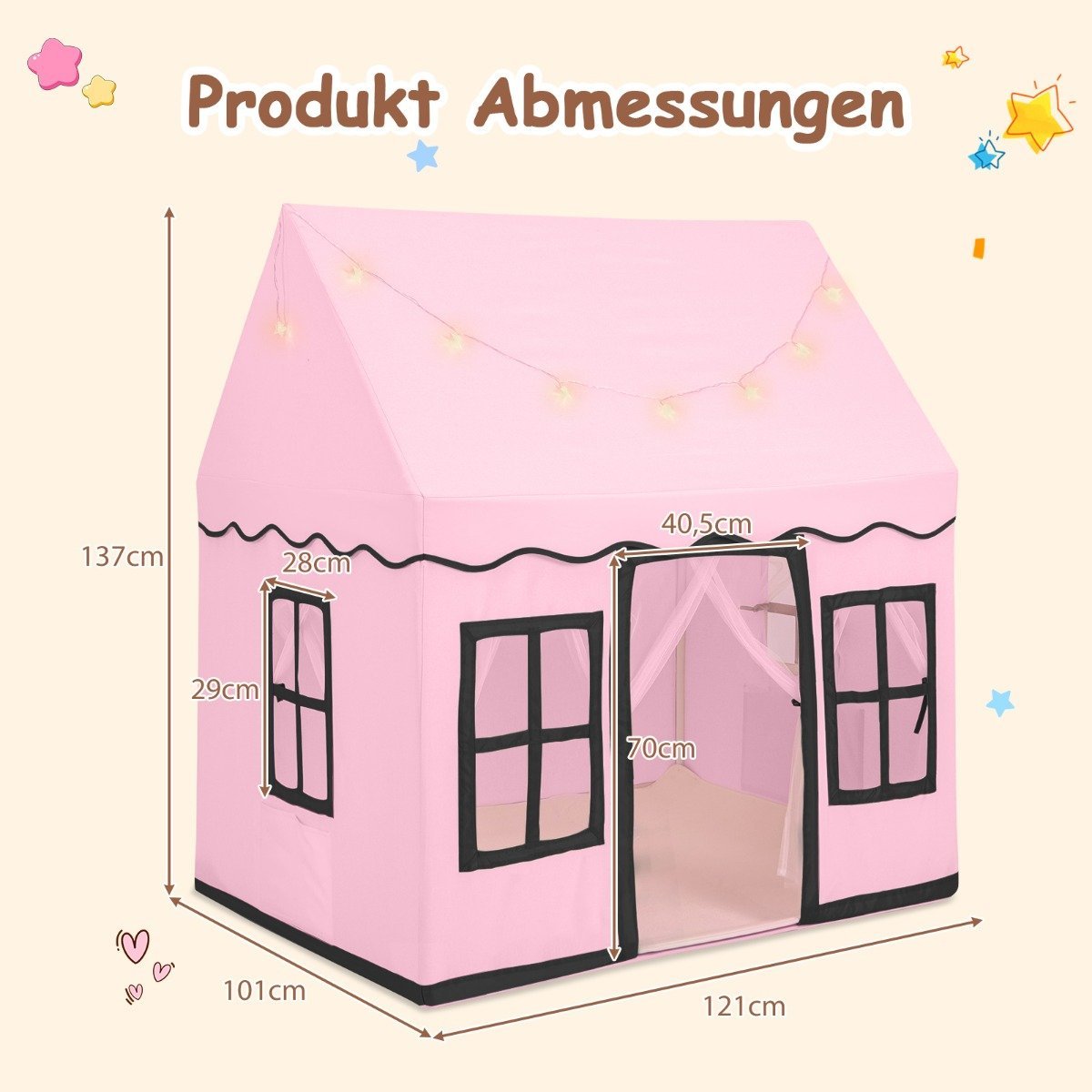 Didelė vaikų žaidimų palapinė su žvaigždžių girlianda (Rožinė)