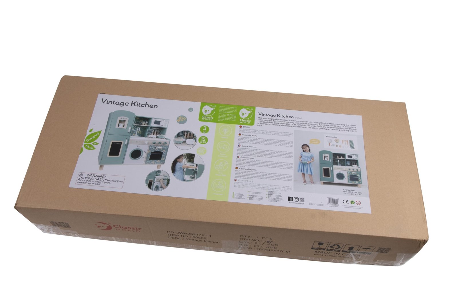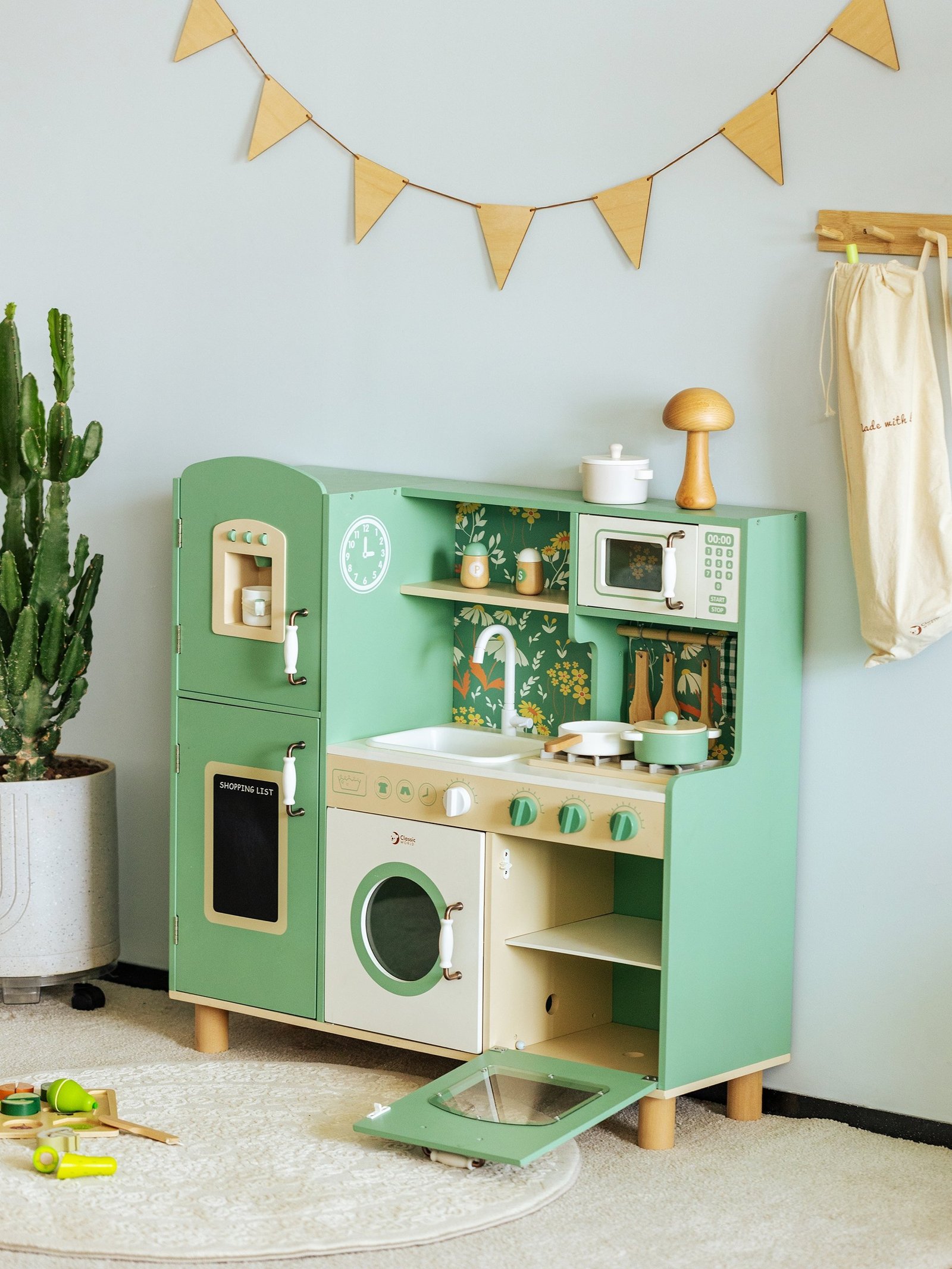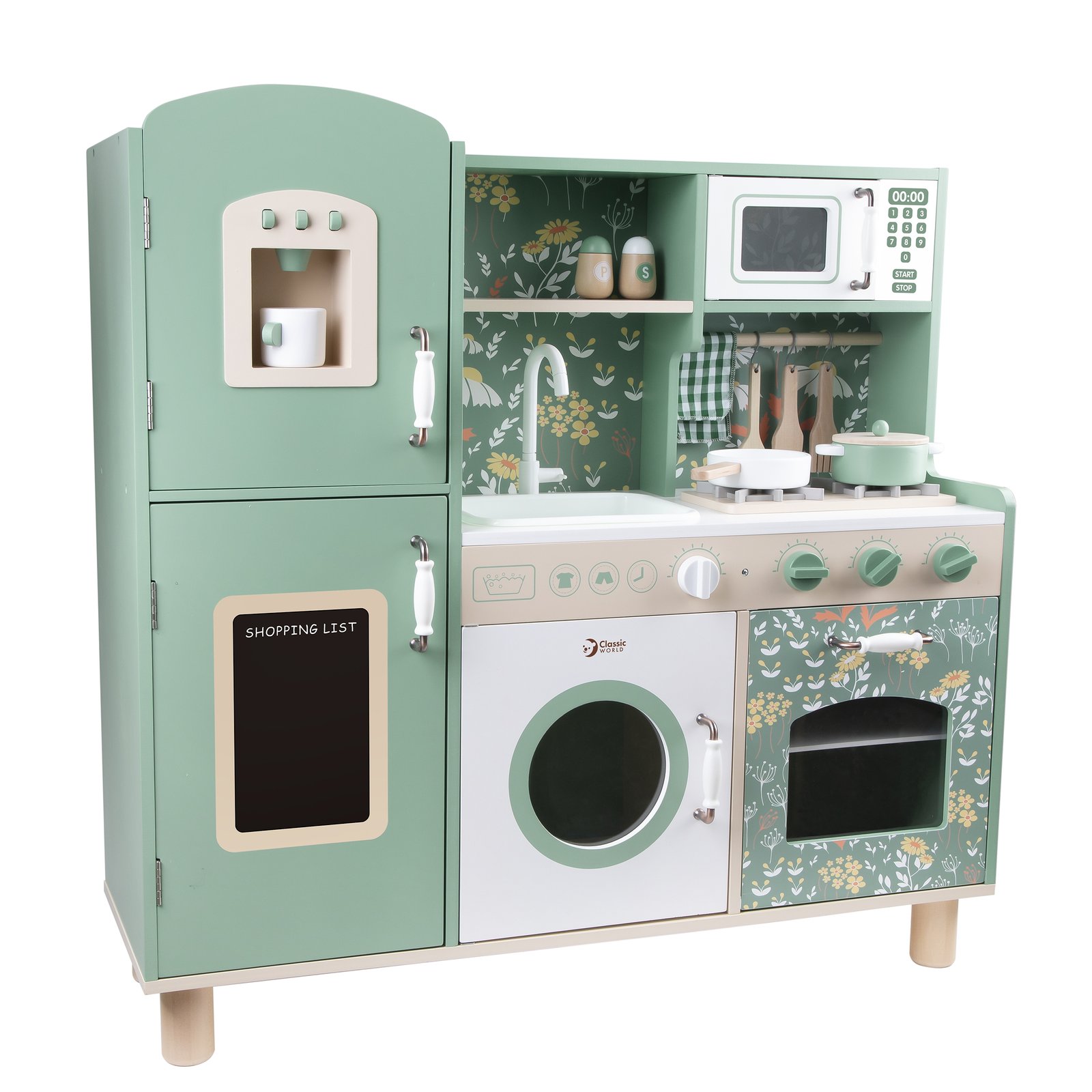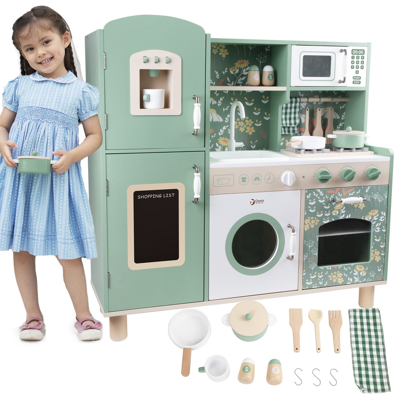 Didelė medinė vintažinė virtuvėlė „Classic World“ suteiks mažiesiems virėjams autentišką vintažinę žaidimo patirtį. Jos patrauklios spalvos ir klasikinės detalės iškart patraukia akį ir kviečia įsitraukti į žaidimą. Virtuvėlėje yra daug funkcinių zonų, įskaitant kriauklę, viryklę, spinteles, net indaplovę ir rašymo lentą. Dėl savo daugiafunkcio dizaino vaikas gali atlikti įvairius vaidmenis, susijusius su maisto ruošimu, patiekimu ir tvarkymu.