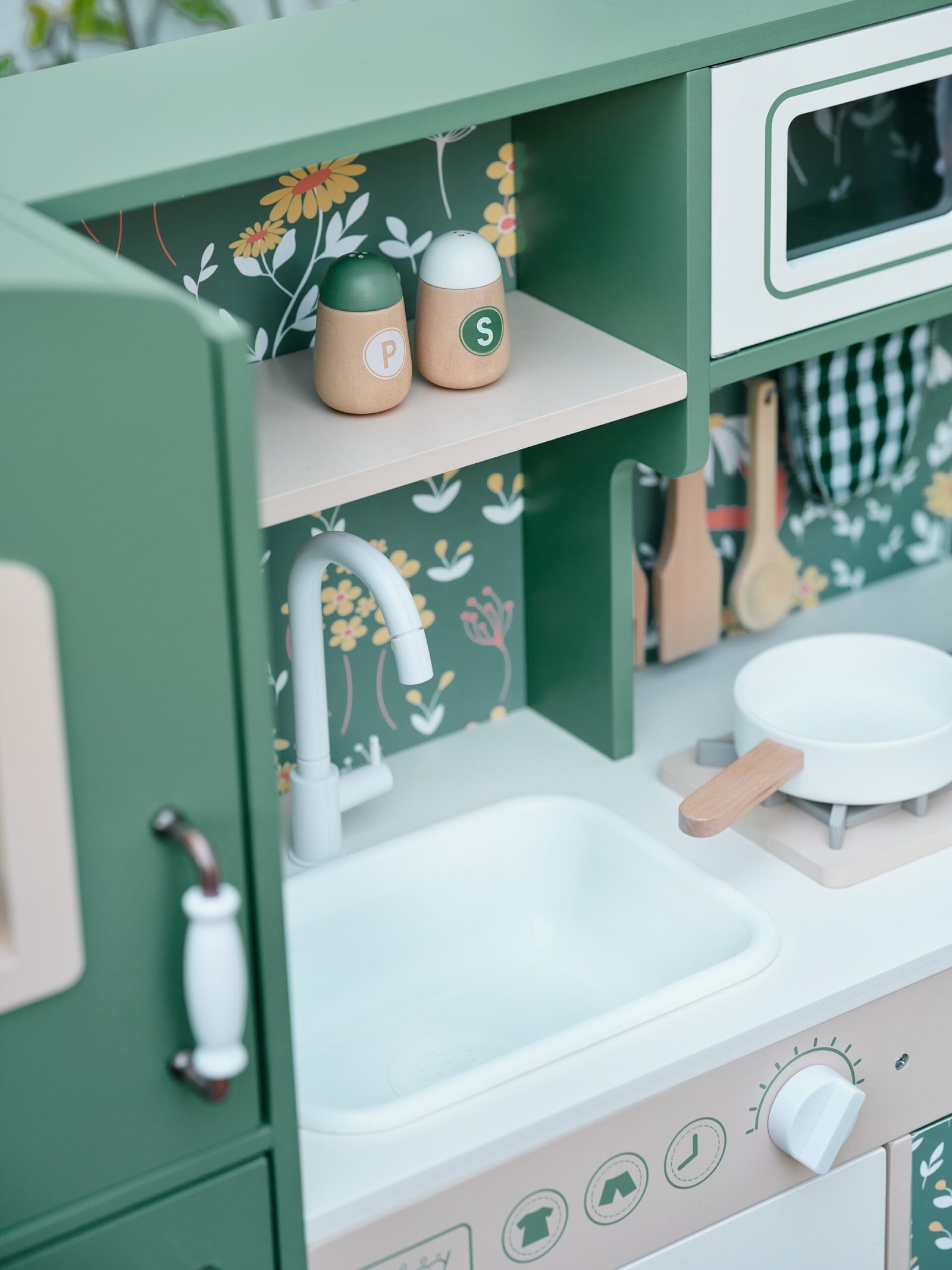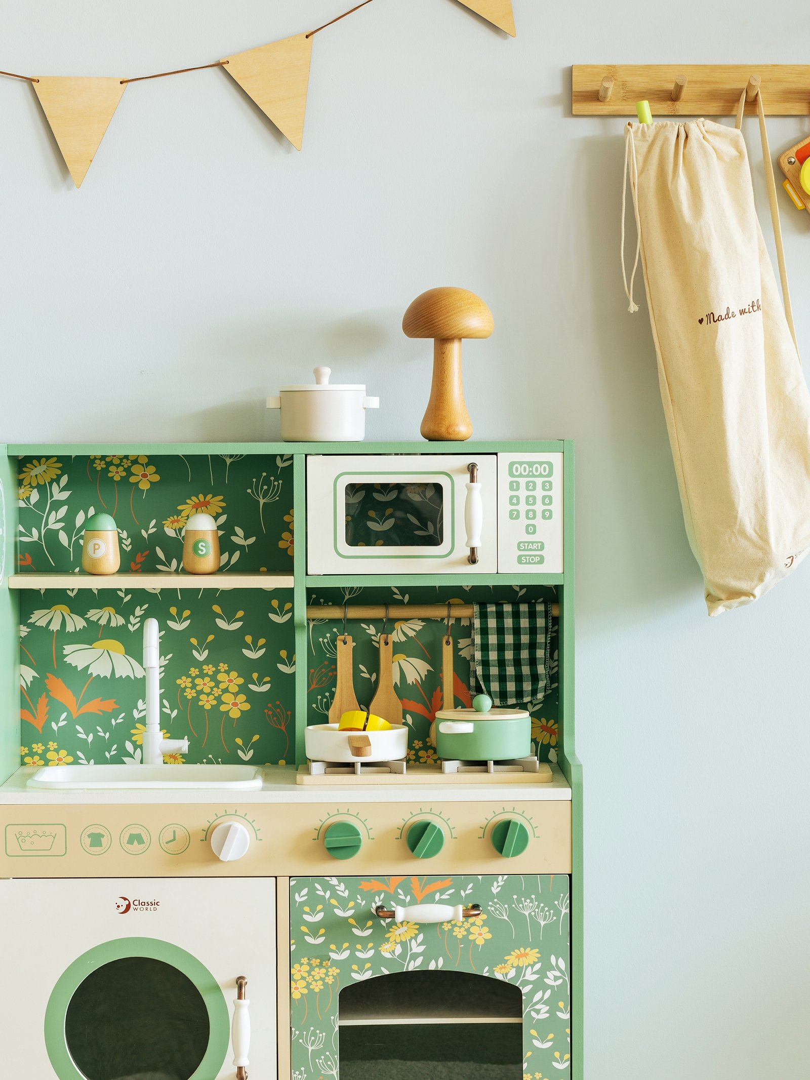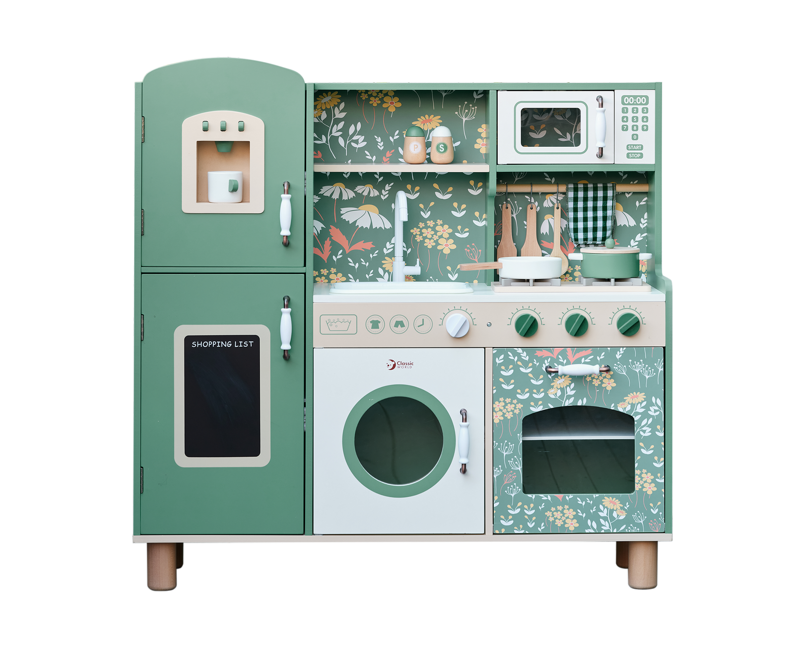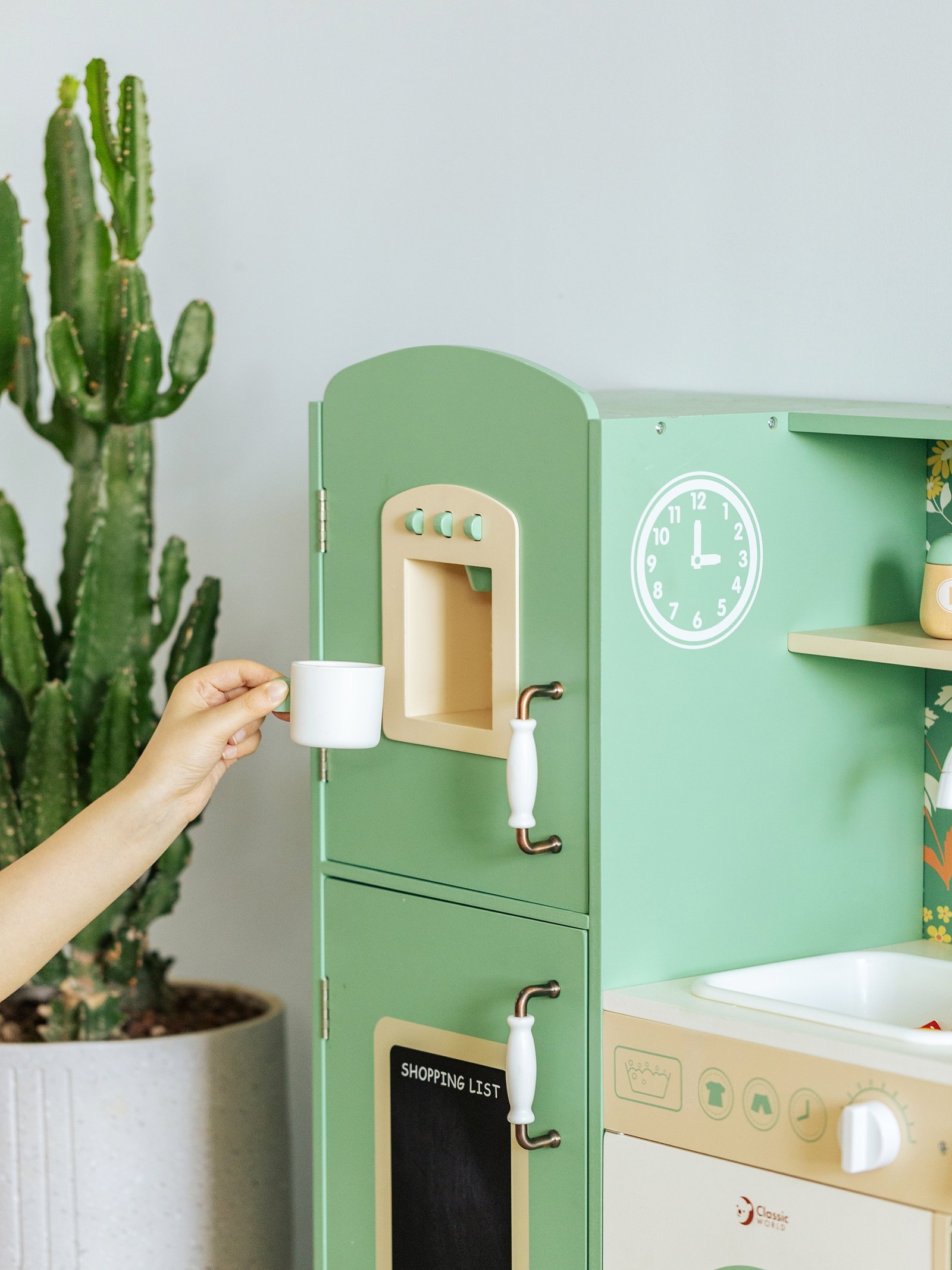 Didelė medinė vintažinė virtuvėlė „Classic World“ suteiks mažiesiems virėjams autentišką vintažinę žaidimo patirtį. Jos patrauklios spalvos ir klasikinės detalės iškart patraukia akį ir kviečia įsitraukti į žaidimą. Virtuvėlėje yra daug funkcinių zonų, įskaitant kriauklę, viryklę, spinteles, net indaplovę ir rašymo lentą. Dėl savo daugiafunkcio dizaino vaikas gali atlikti įvairius vaidmenis, susijusius su maisto ruošimu, patiekimu ir tvarkymu.
